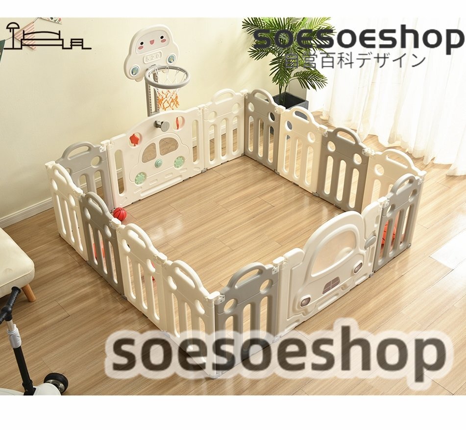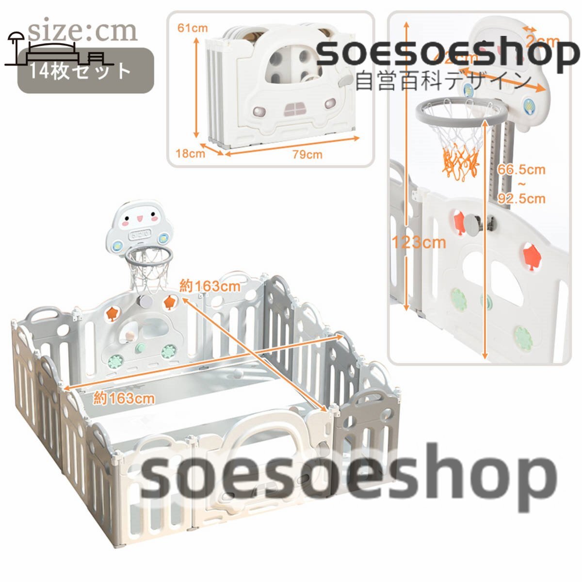 人気推薦★ベビーサークル 折りたたみ 14枚セット 163*163cm 変形可能 扉付き バスケットゴール付き