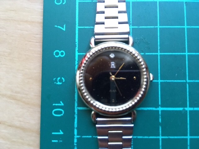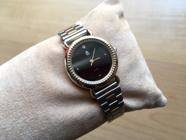 12時側にストーン、ラメのようなブラック文字盤、