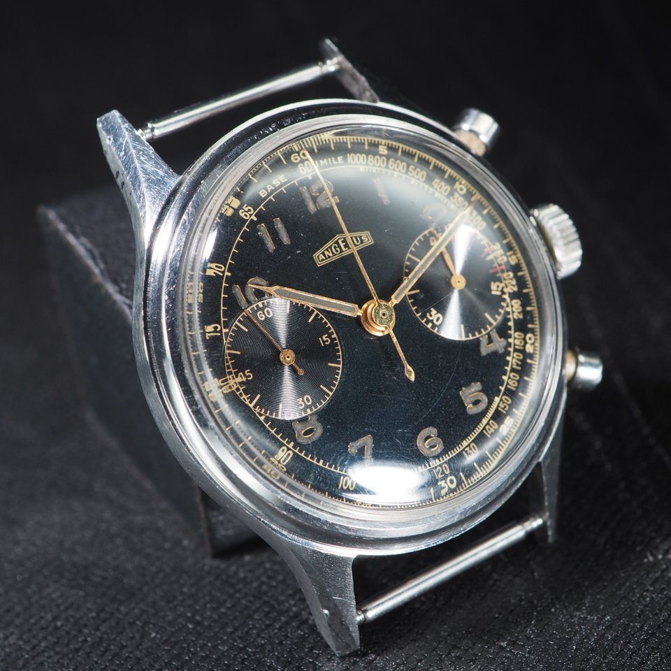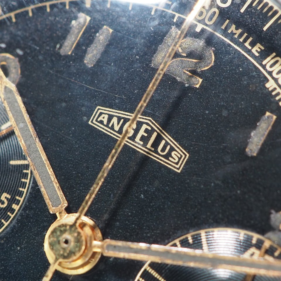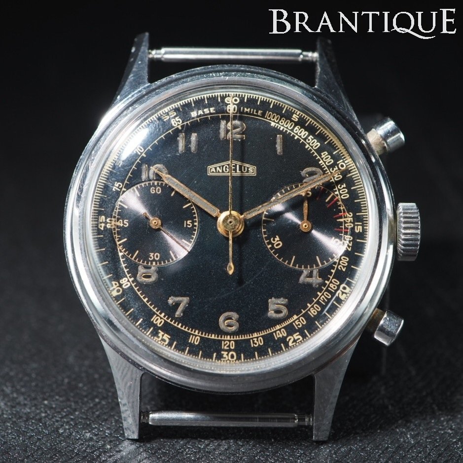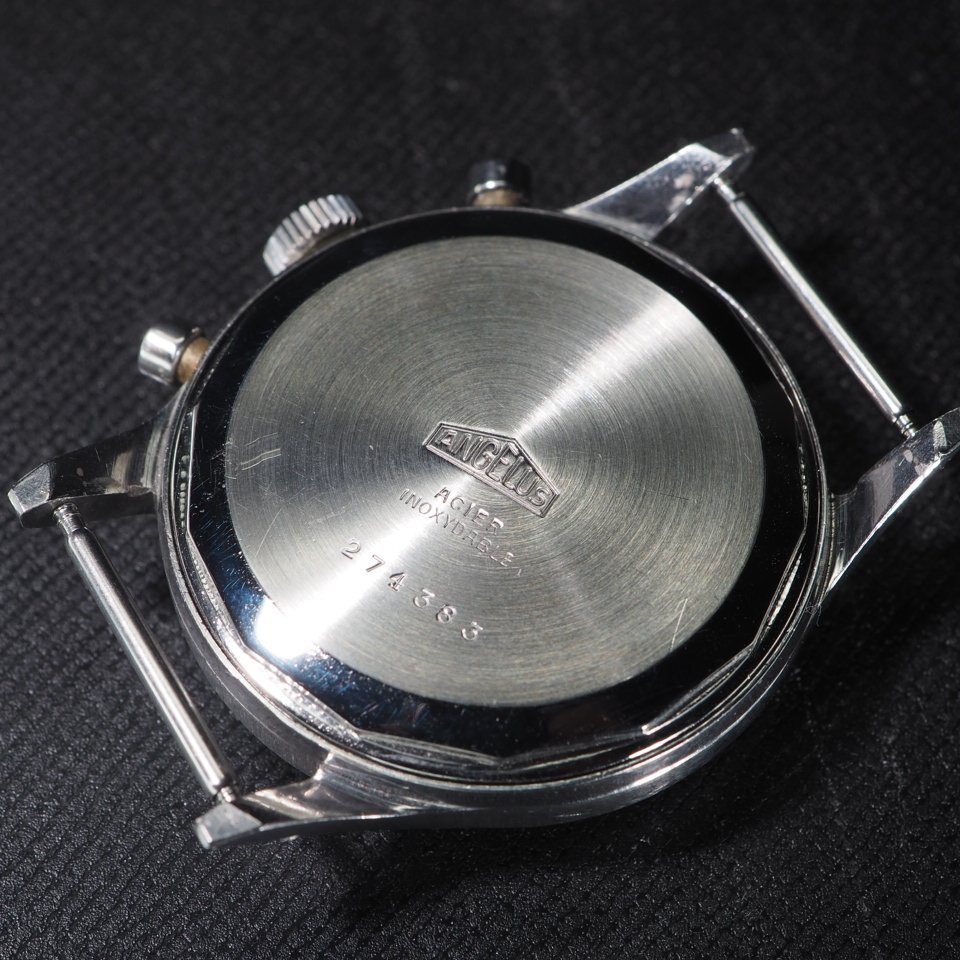 ◆本体のみ◆ ANGELUS アンジェラス Cal.215 SS クロノグラフ アンティーク ヴィンテージ 手巻き 黒 文字盤 USED 稼働 腕時計 「21024」