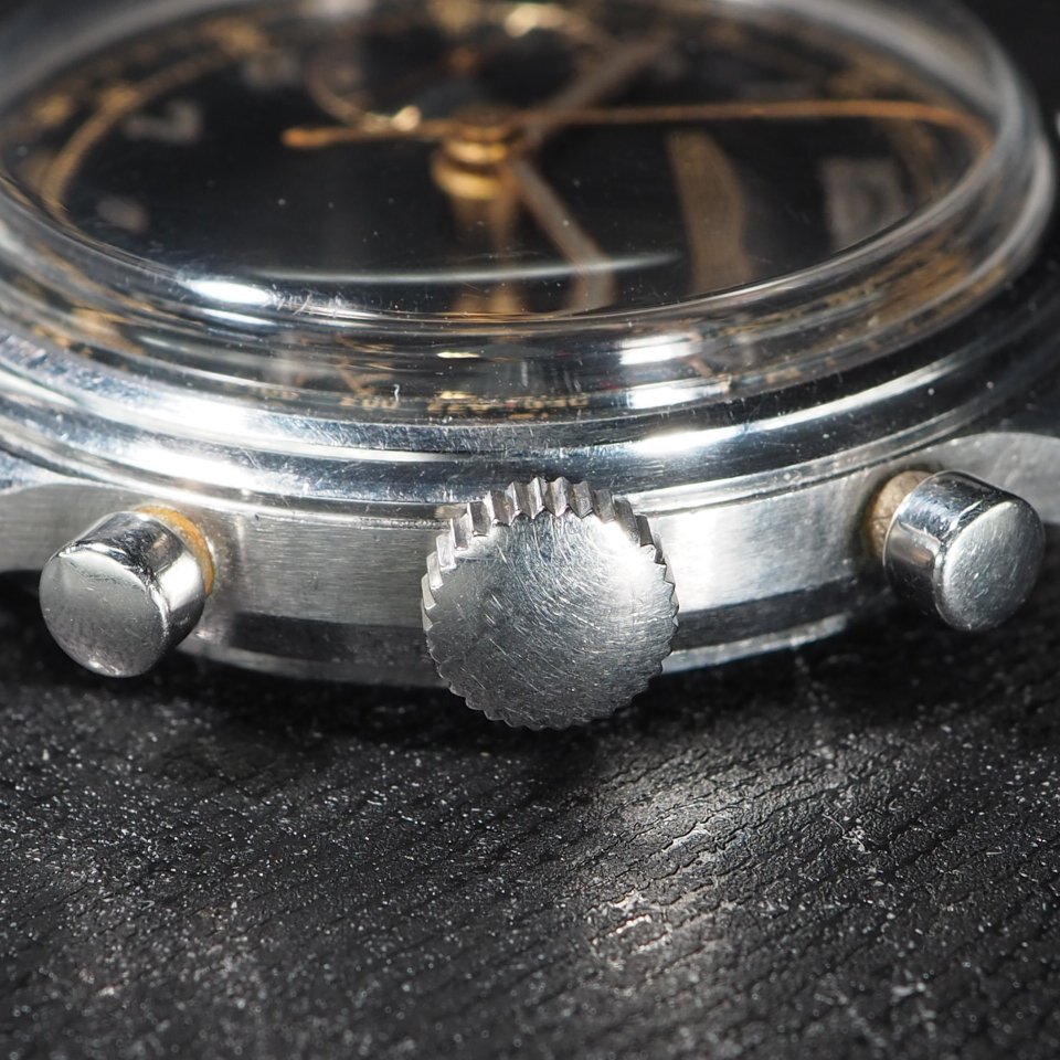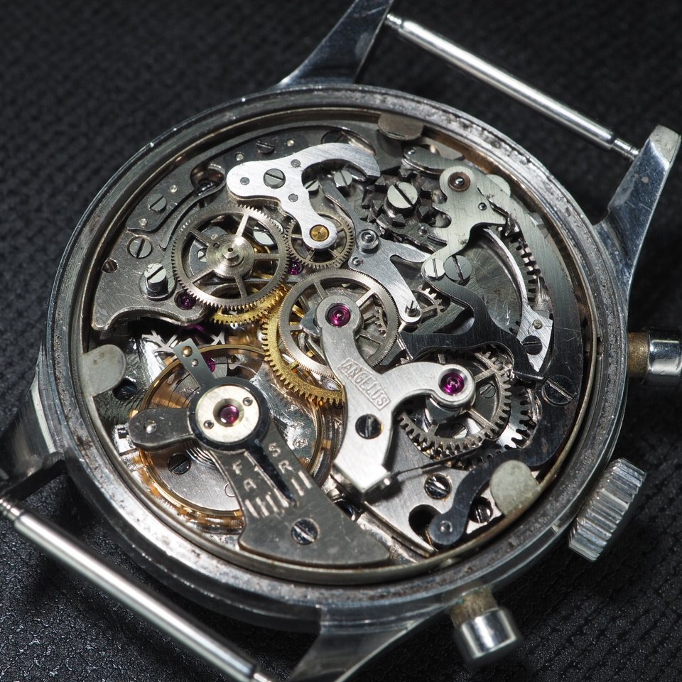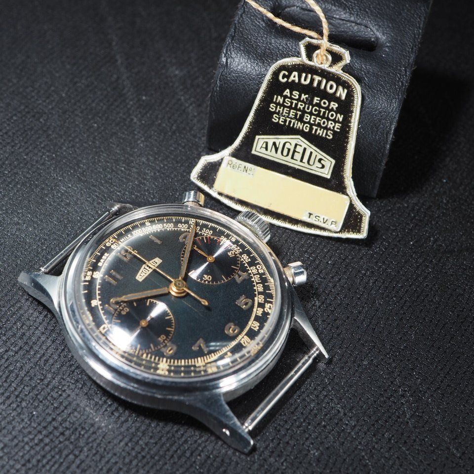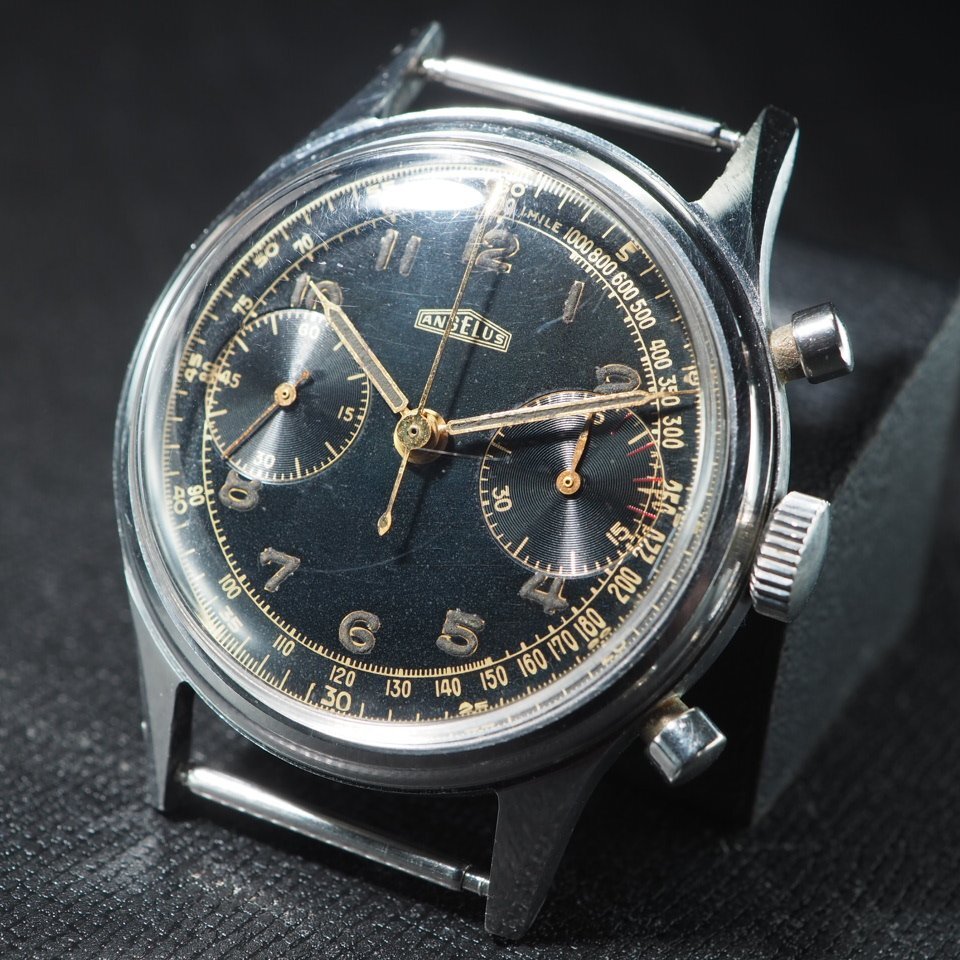 ◆本体のみ◆ ANGELUS アンジェラス Cal.215 SS クロノグラフ アンティーク ヴィンテージ 手巻き 黒 文字盤 USED 稼働 腕時計 「21024」