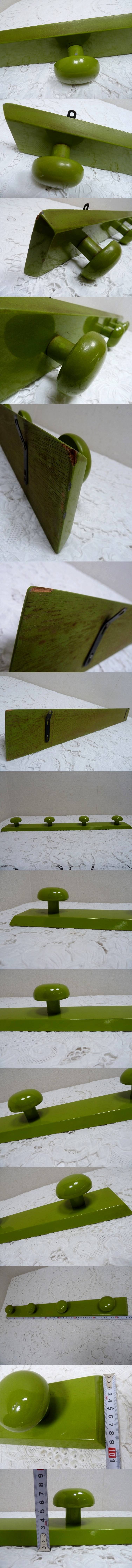 (☆BM)昭和レトロ 木製 緑 グリーン ハンガーフック 懐かしい コートハンガー フック 横幅84.5㎝ アンティーク調 壁付け ウォールフック