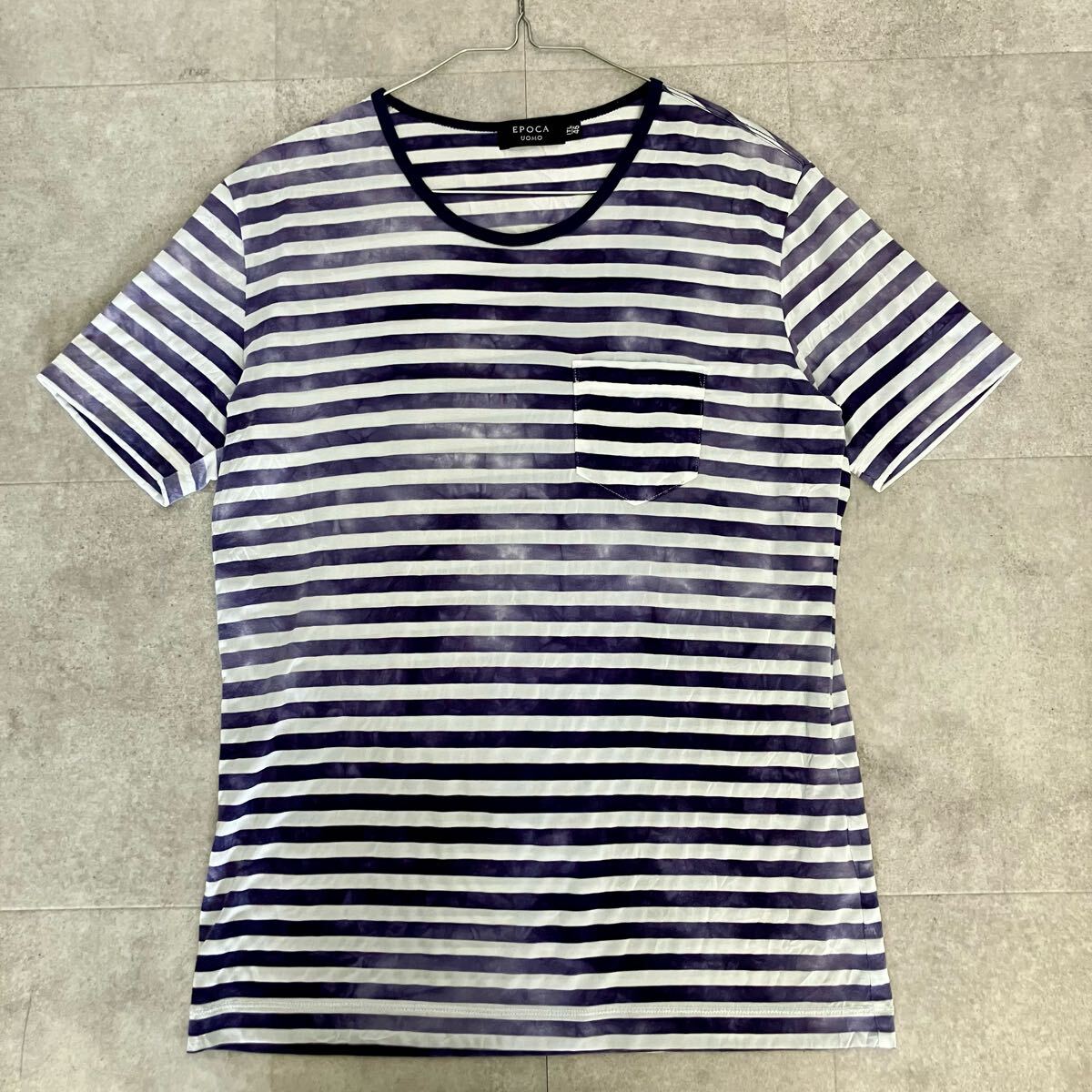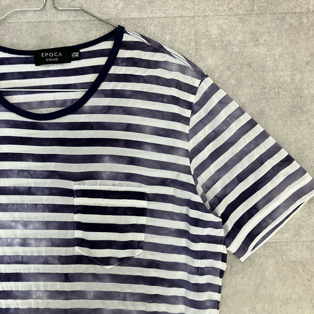 ●美品 EPOCA UOMO エポカ ボーダー柄 × ダイダイ 半袖 Tシャツ/size46/メンズ/三陽商会