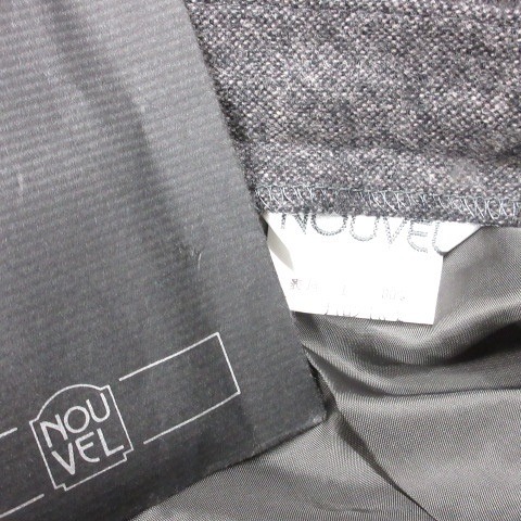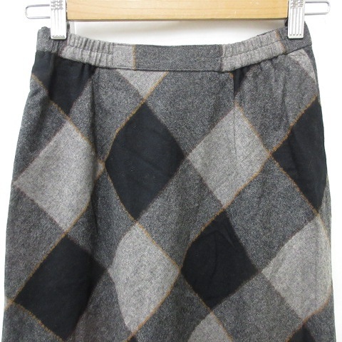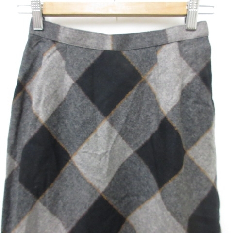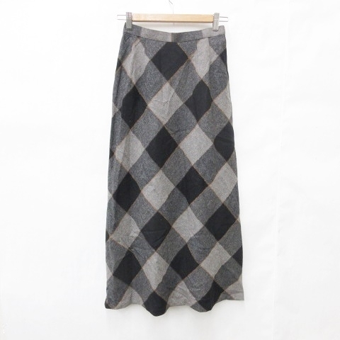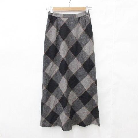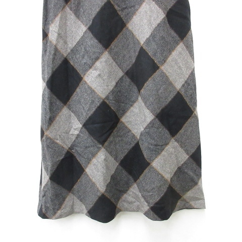 未使用品 ヌーベル NOUVEL フレアスカート ロング丈 チェック柄 ウール グレー 黒 ブラック 9 レディース