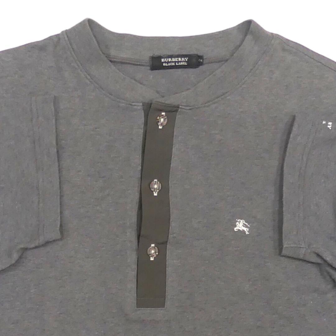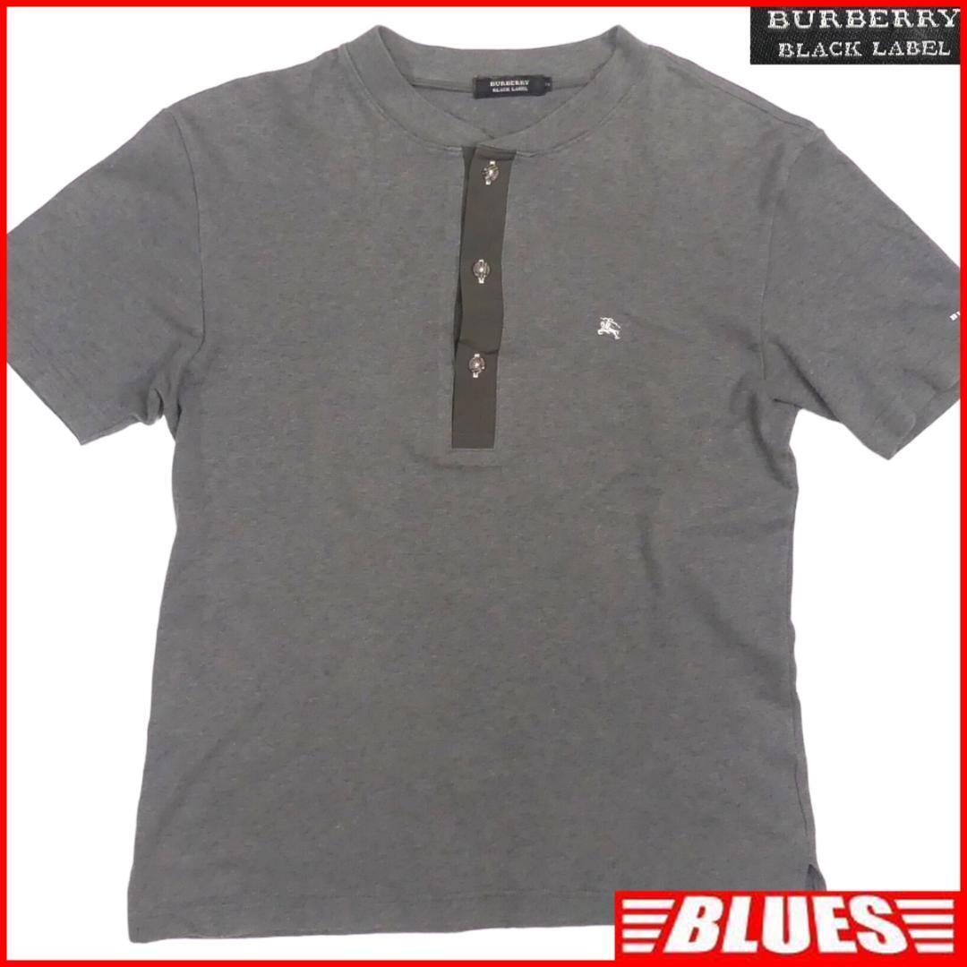 即決★BURBERRY BLACK LABEL★メンズM 廃版 Tシャツ バーバリーブラックレーベル 2 グレー ヘンリーネック カットソー 半袖 刺繍