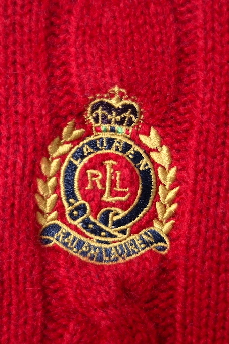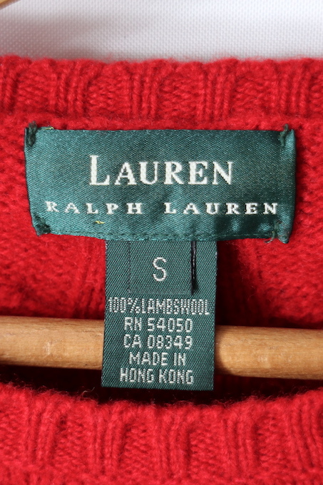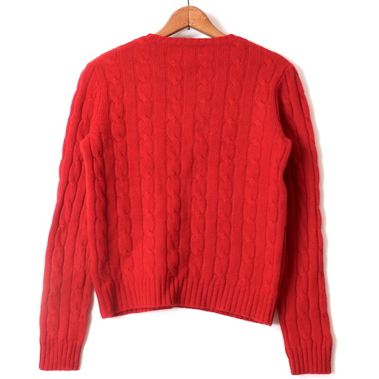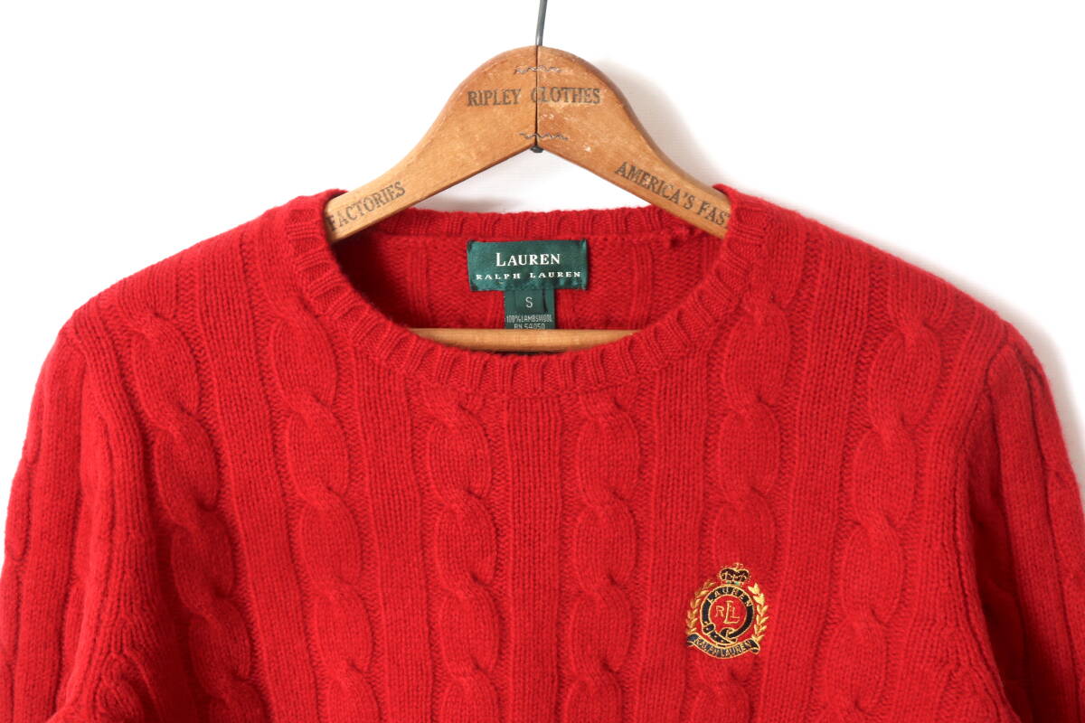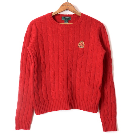 LAUREN RALPH LAUREN■ワンポイント ウールケーブルニット レッド/S ラルフローレン セーター