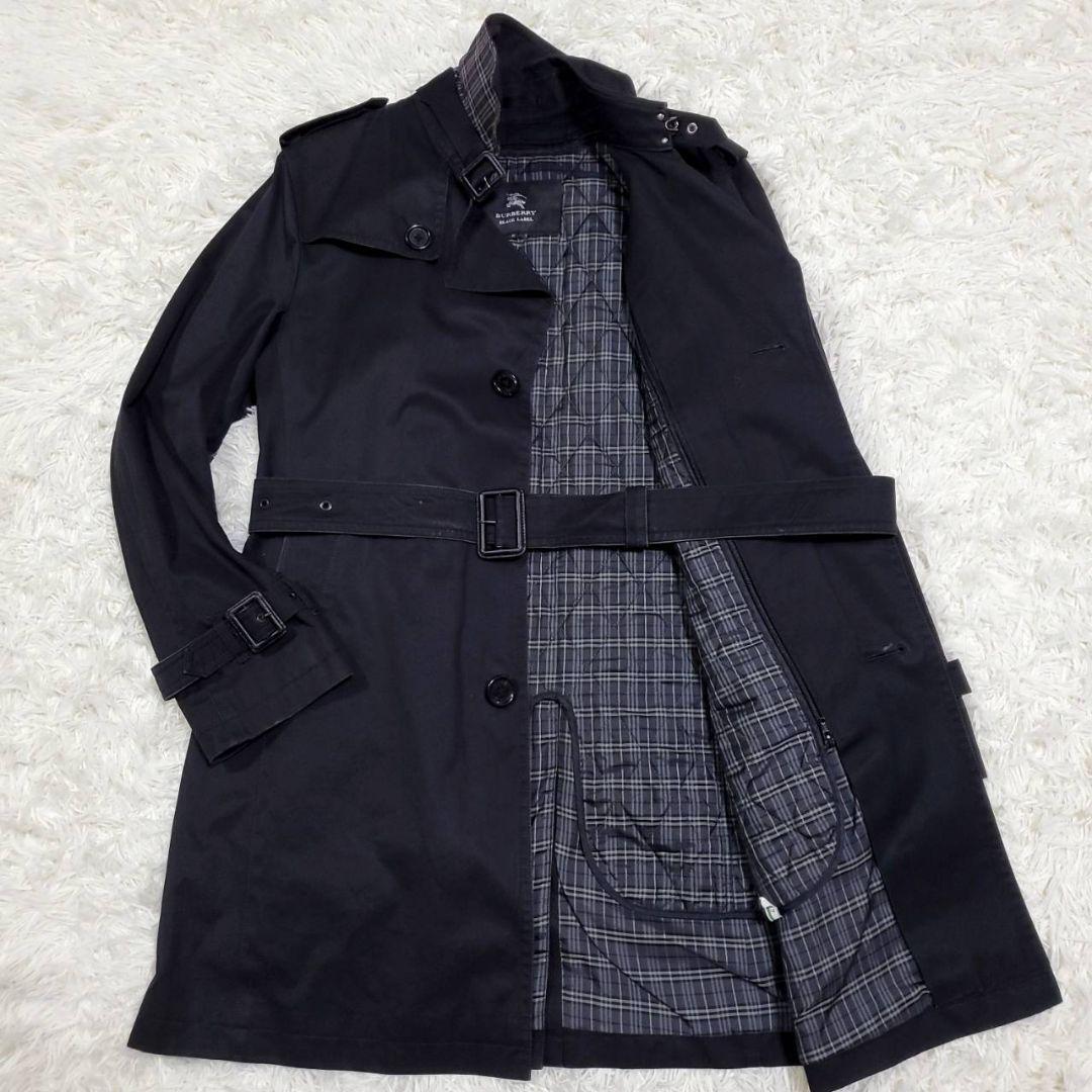 M バーバリーブラックレーベル トレンチ コート黒 中綿 ライナー ノバチェック キルティング BURBERRY BLACK LABEL ベルト 三陽商会 ノヴァチェック ベルテッド
