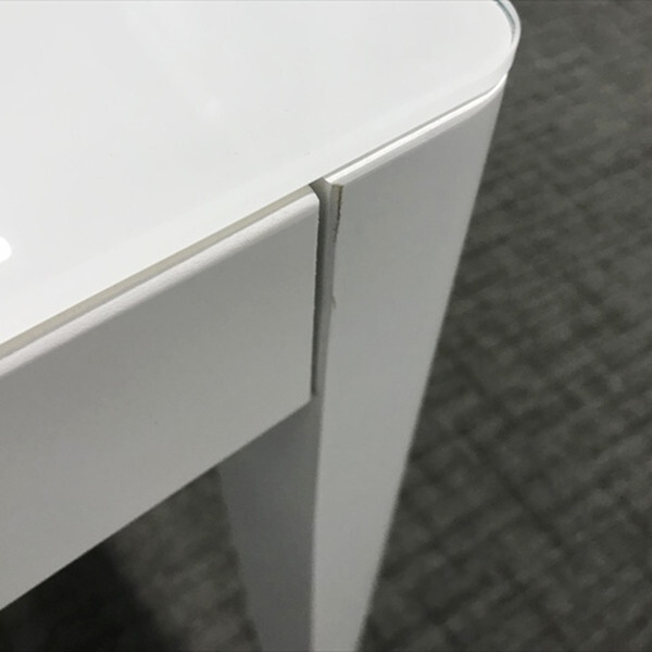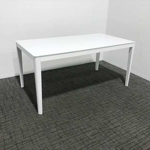 清潔感のあるホワイトがモダンな印象を与えるテーブルです。ガラス天板が陽の光りや照明を反射し、オフィス空間を明るく演出します。