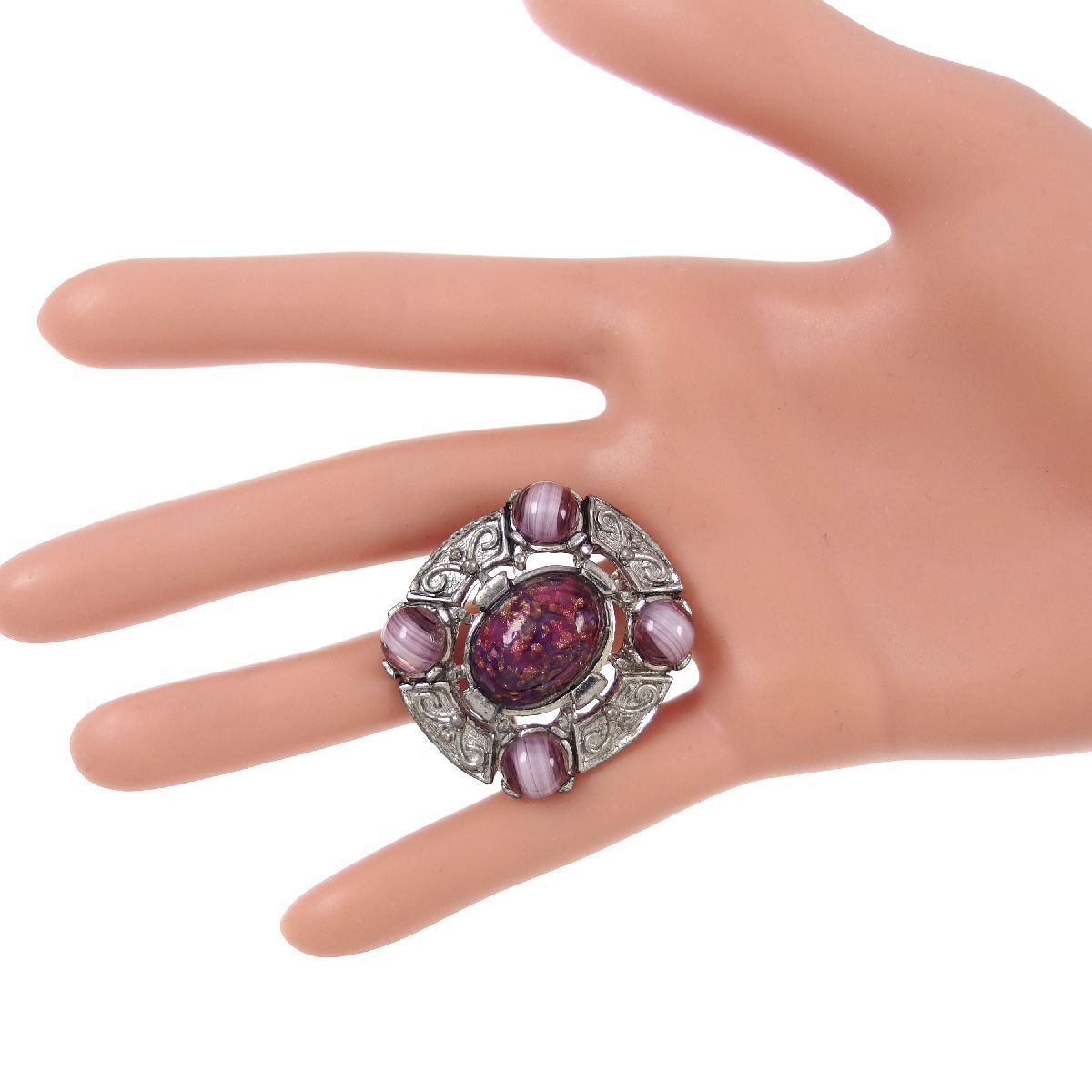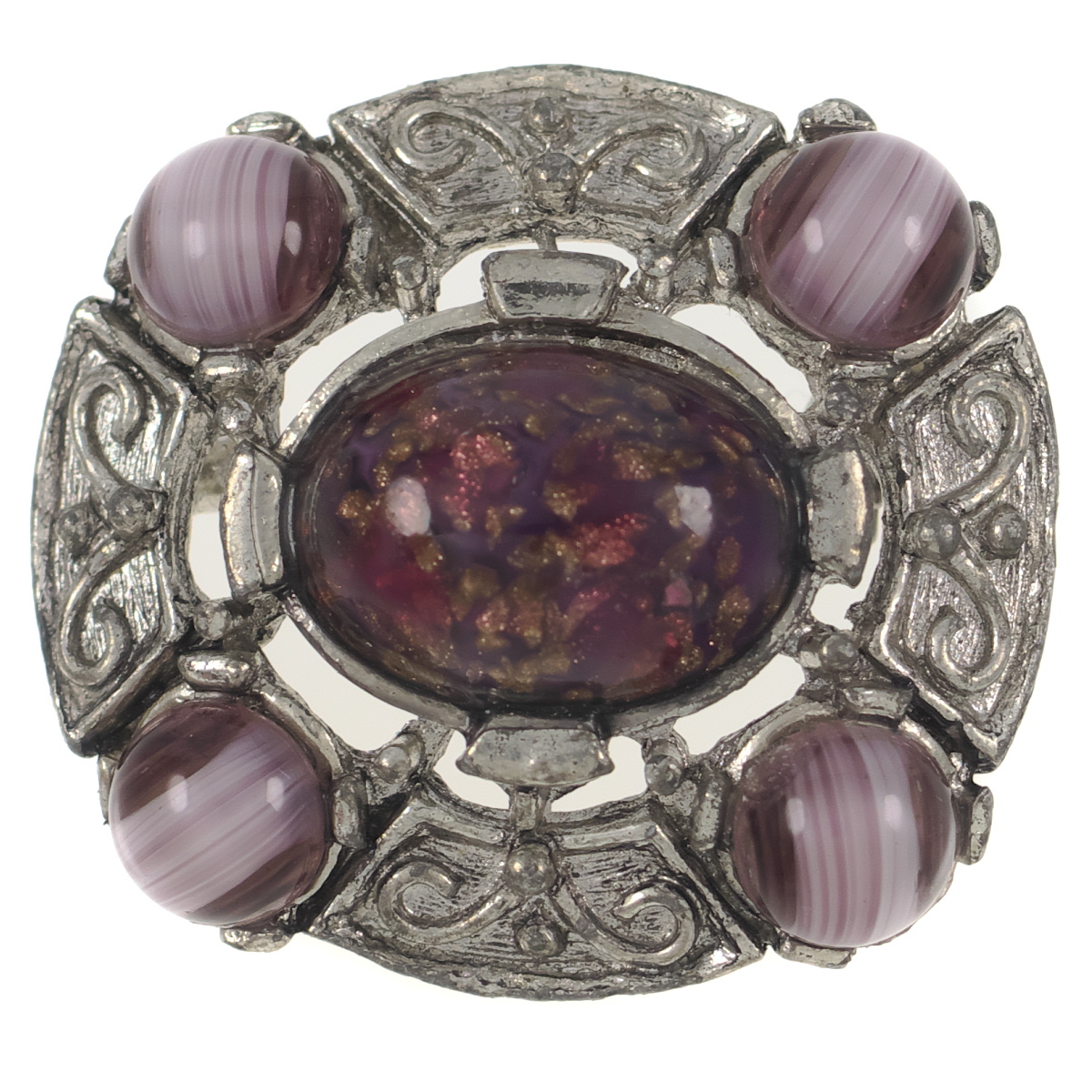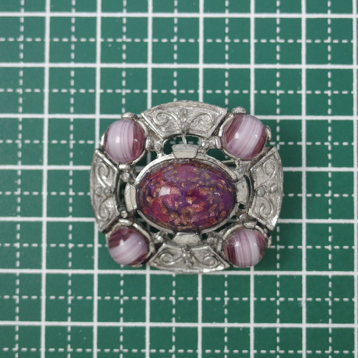 UK3267◆ パープル系カボションストーン マーブル ラメ ギブレガラス 色石 ケルト 英国 イギリス ◆ ヴィンテージブローチ ◆
