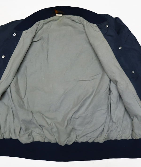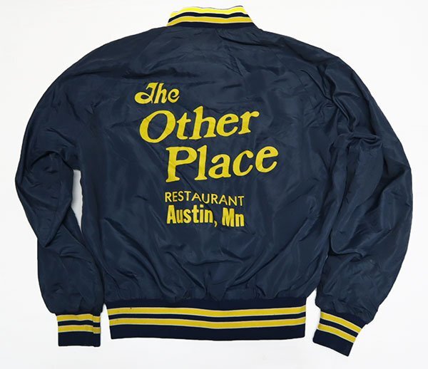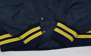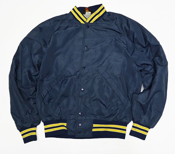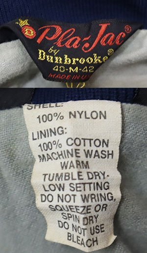 80-90年代頃アメリカ製PLA-JAC/DUNBROCKEのナイロンジャケットの裏地はネル地系で紺系x黄色系x黒系ラインです。