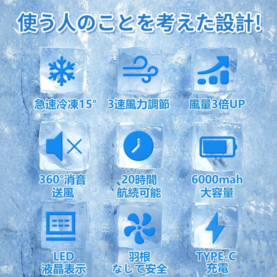 3段階の風量調節機能:スイッチを押すだけで風量ードを3段階で切り替えることができます。(弱風→中風→強風) リア送風機能 : 首の後ろ側からも風が出ることで涼しさを倍増します。首の後ろに風を循環させて360°風が届く、4つのターボファンような設計で蒸し暑くても涼しく、首や顔全体に風を送れます!