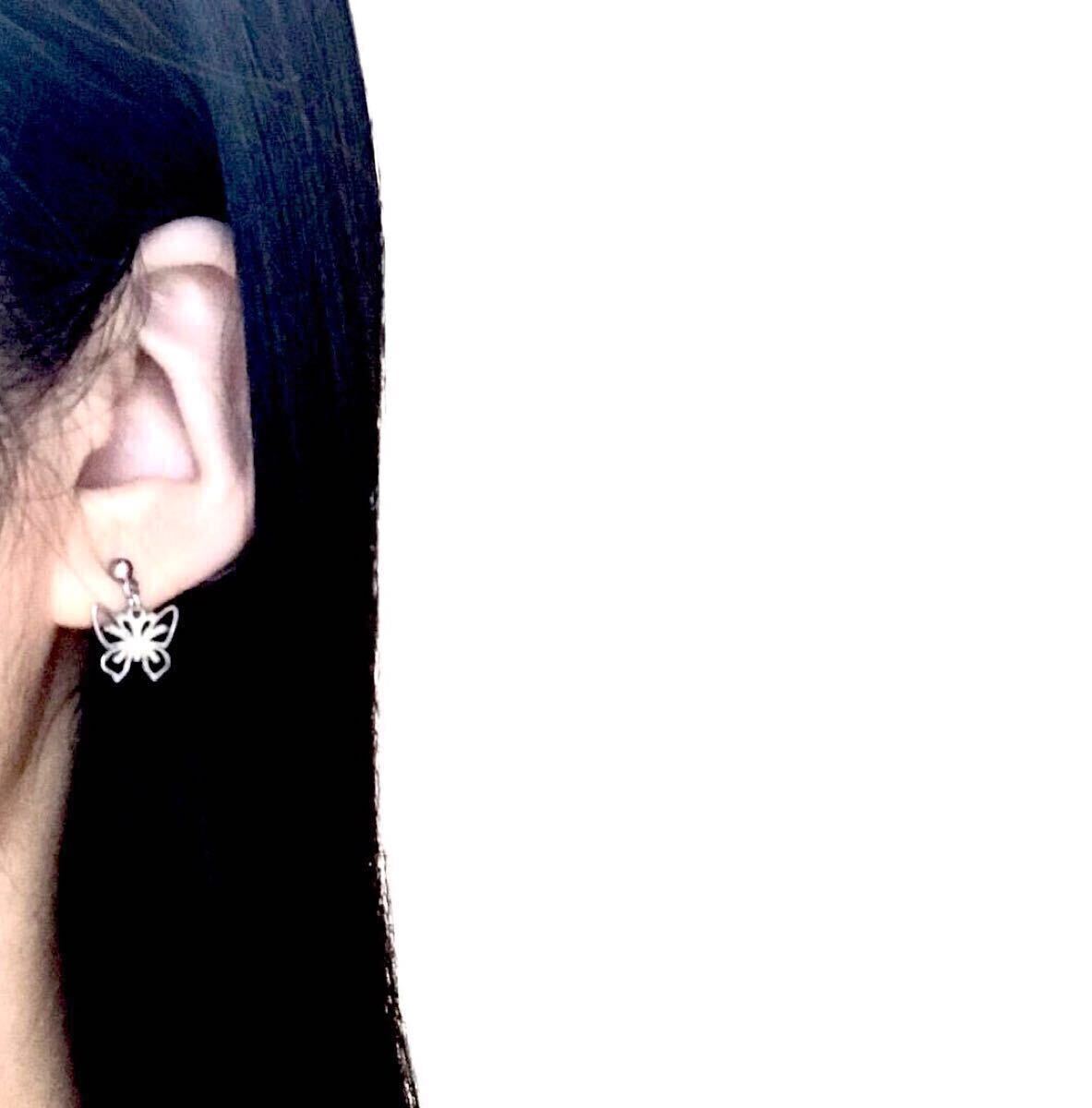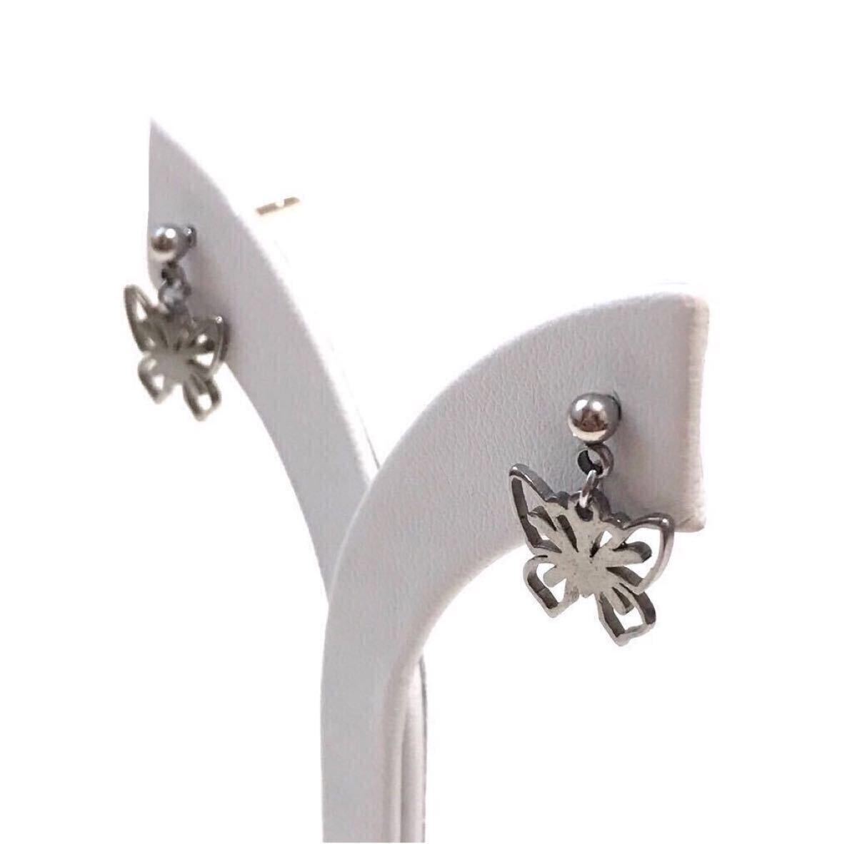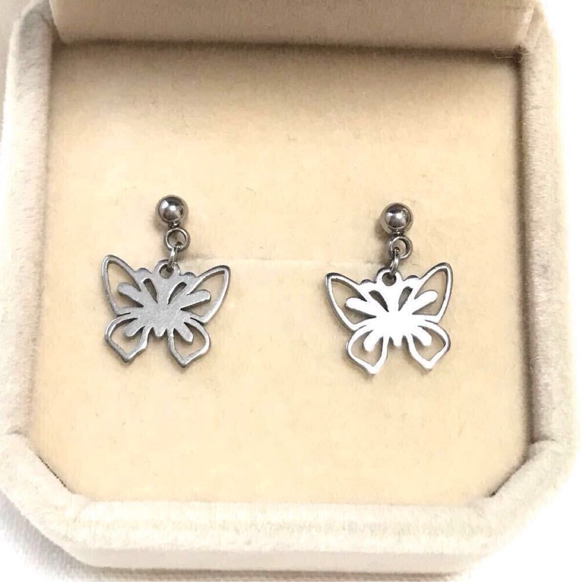 シルバーボールに可愛い蝶のモチーフがついた、サージカルステンレスピアスです。動くたびに揺れるチャームが魅力です。シンプルデザインで、どんなファッションにもよく合うお品です。