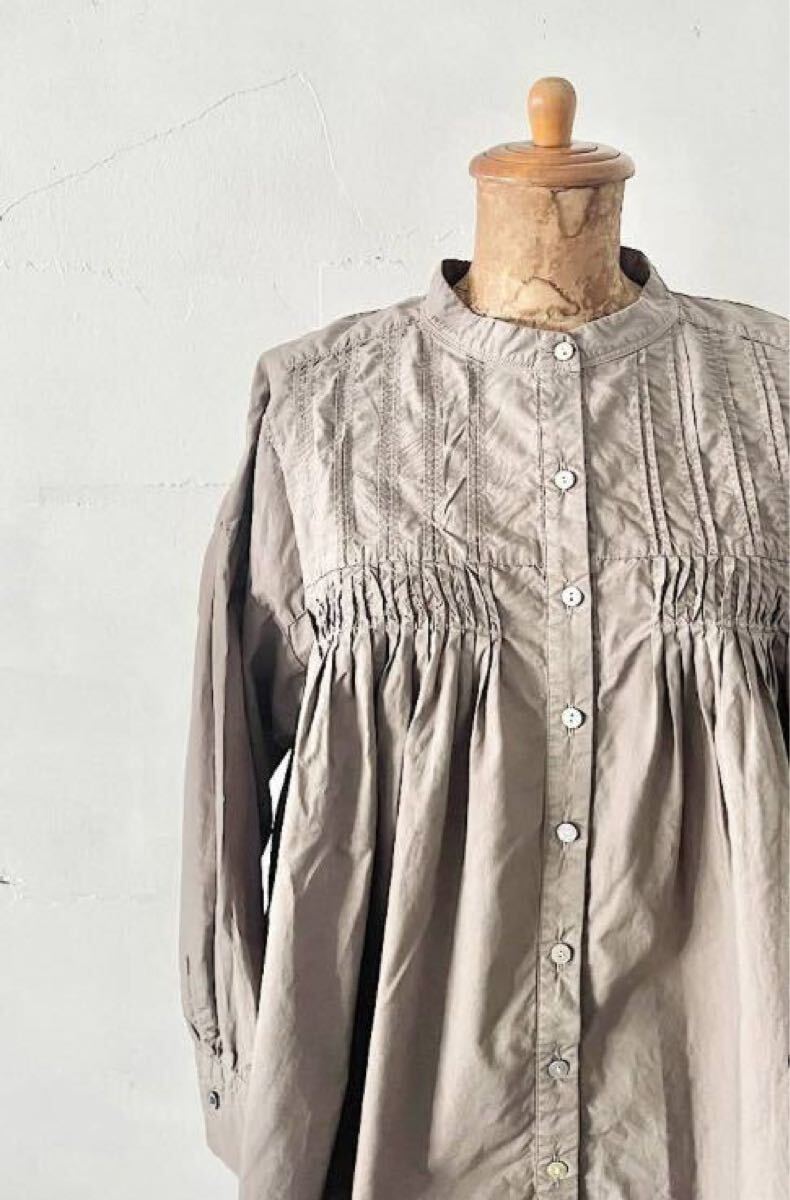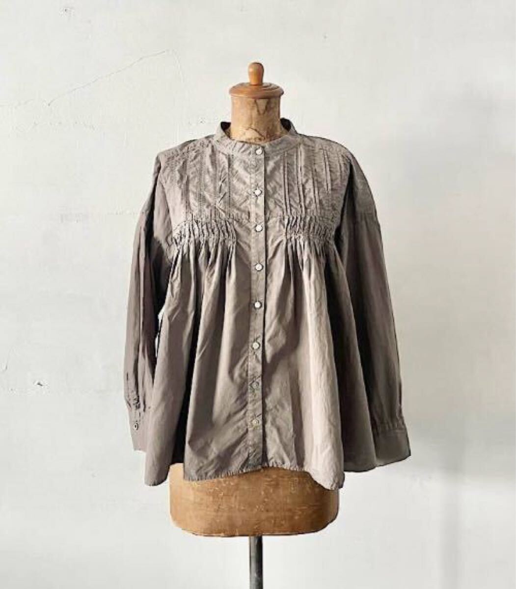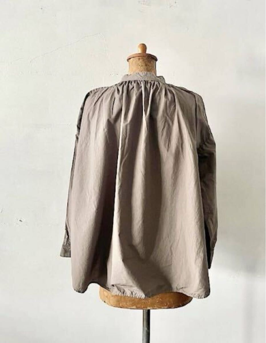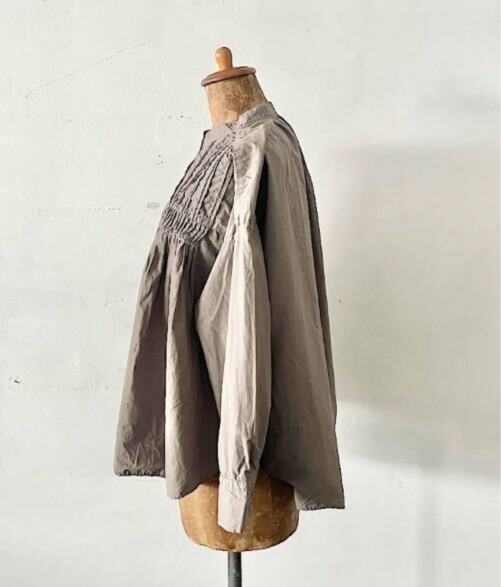 カラーはチャコールグレーでコットン素材のブラウスです。