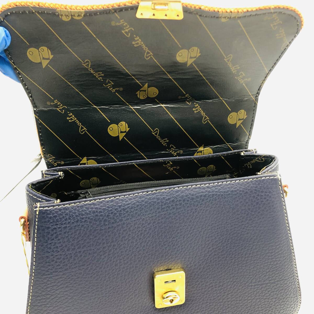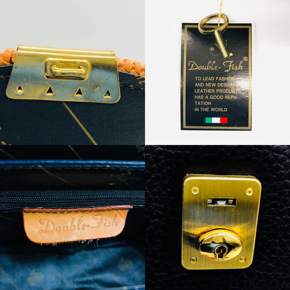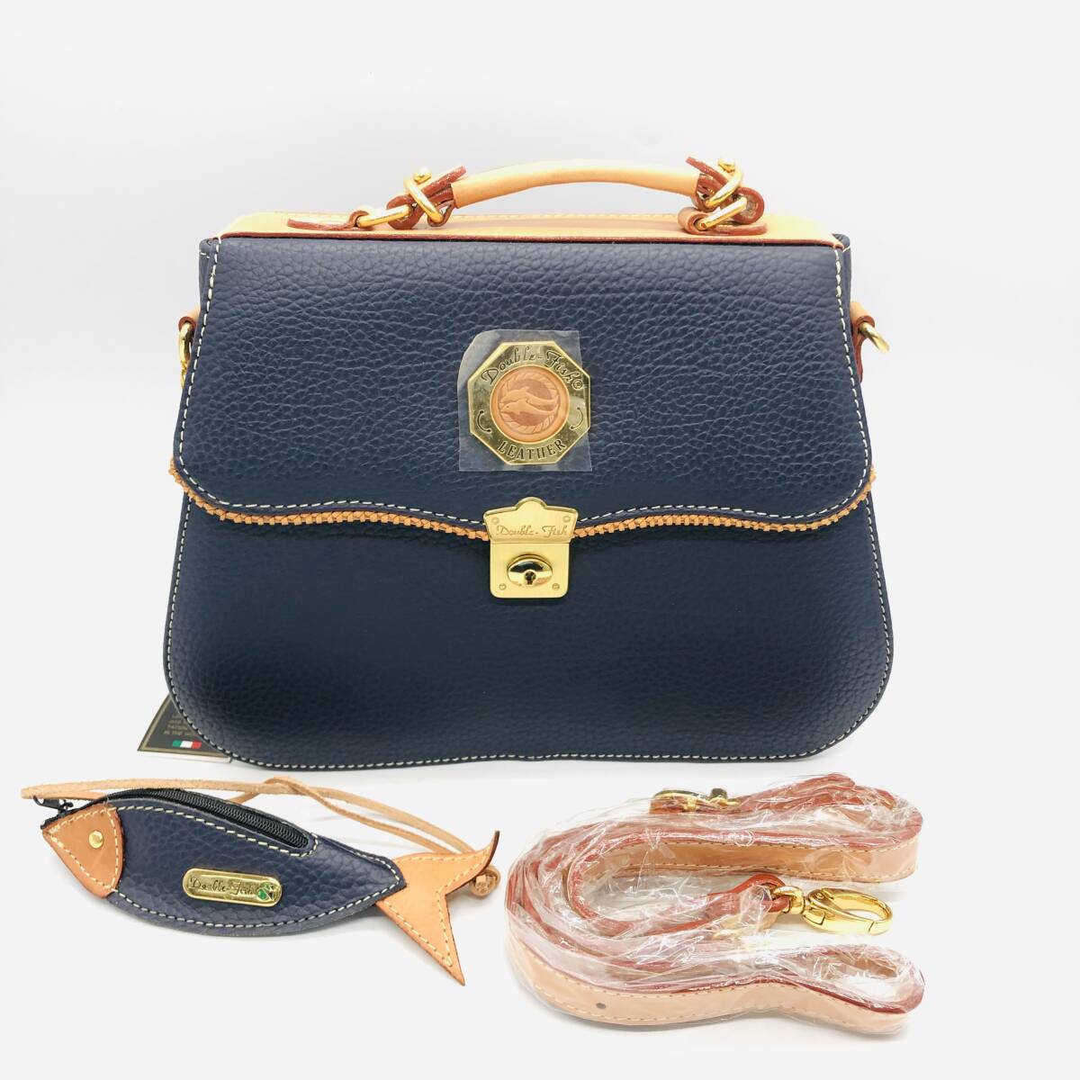 | 【保管品】Double Fish ダブルフィッシュ 2way ハンドバッグ ショルダーバッグ レザー ネイビー系 / io-3630-sw | ||