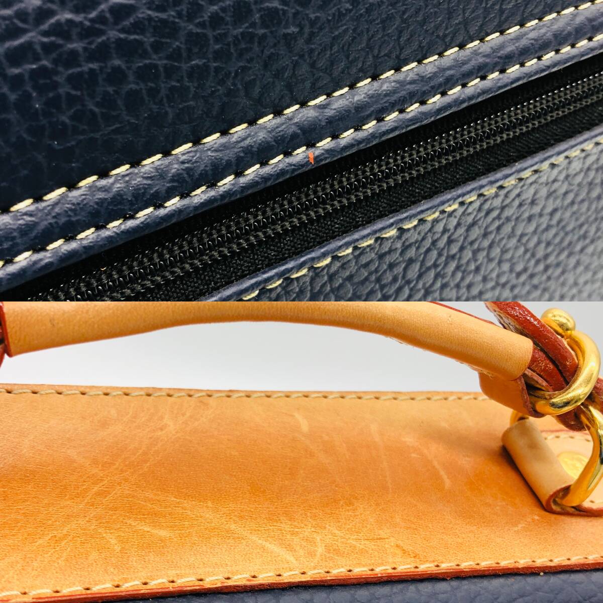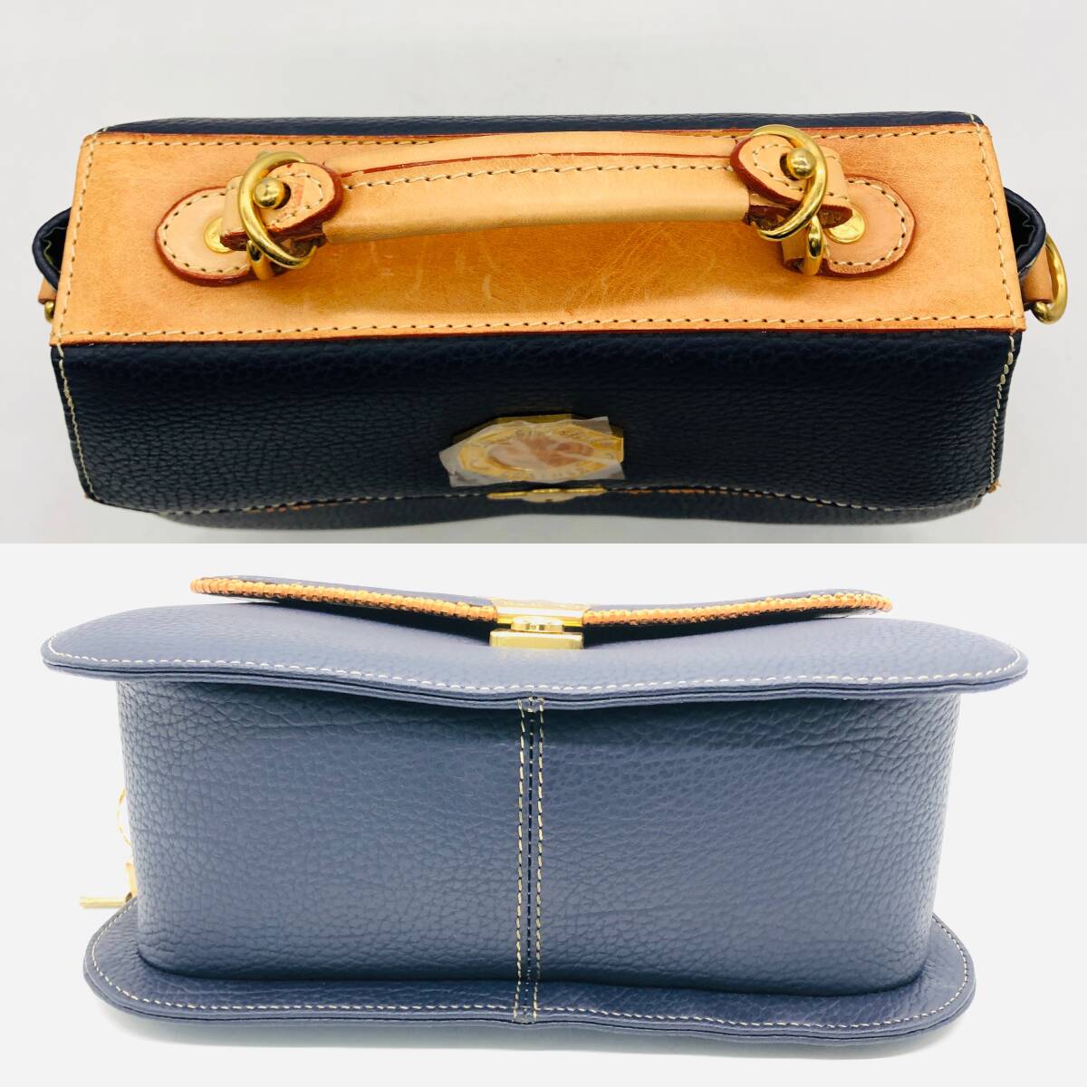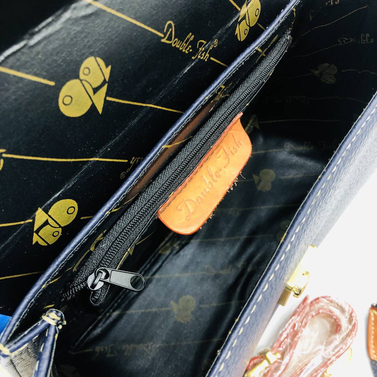 | 【保管品】Double Fish ダブルフィッシュ 2way ハンドバッグ ショルダーバッグ レザー ネイビー系 / io-3630-sw | ||