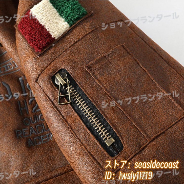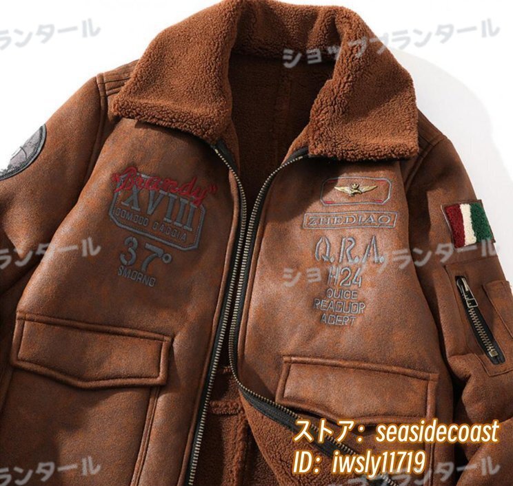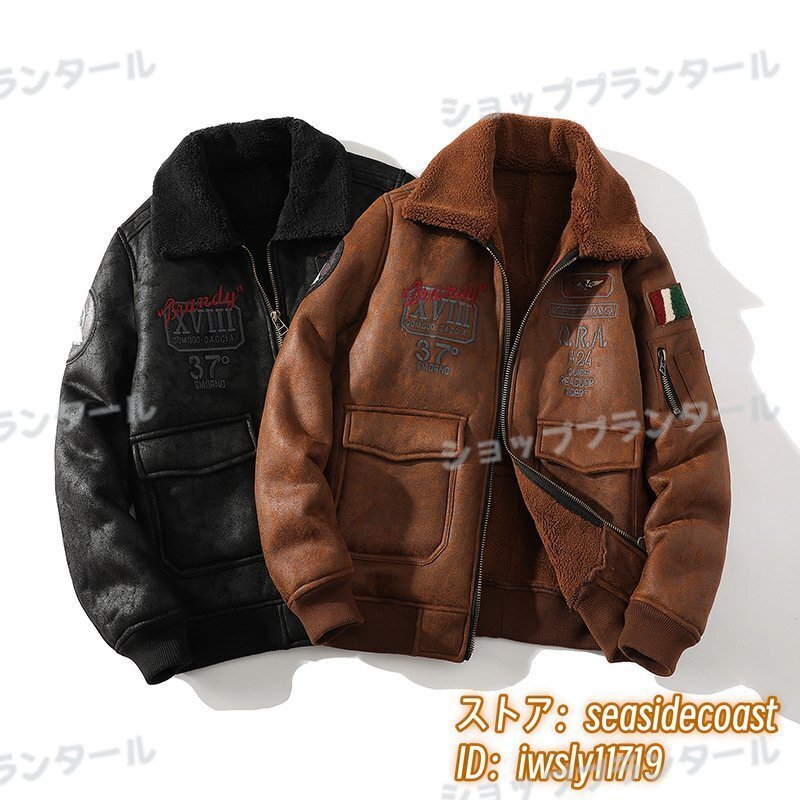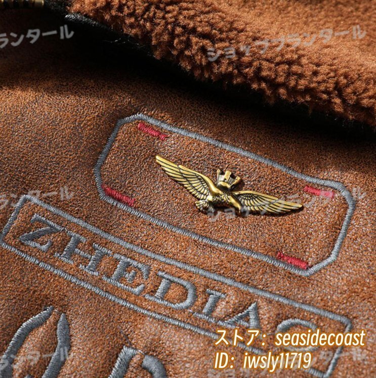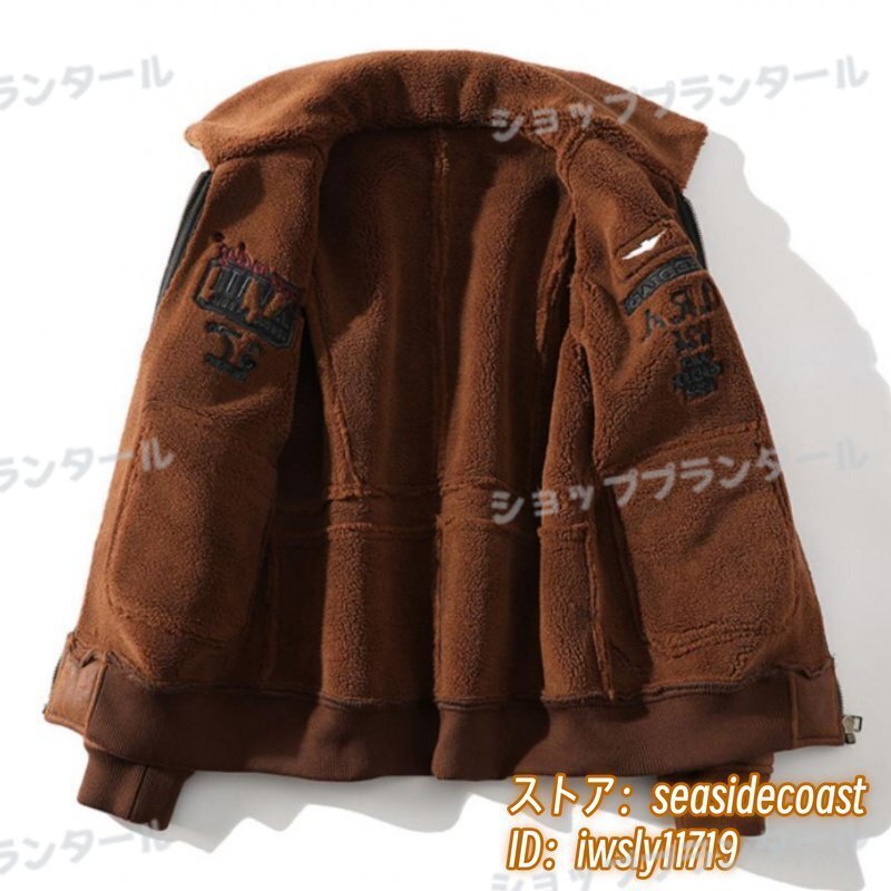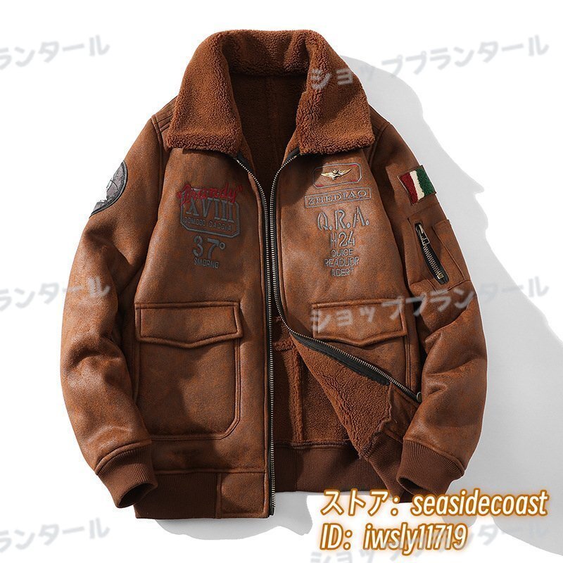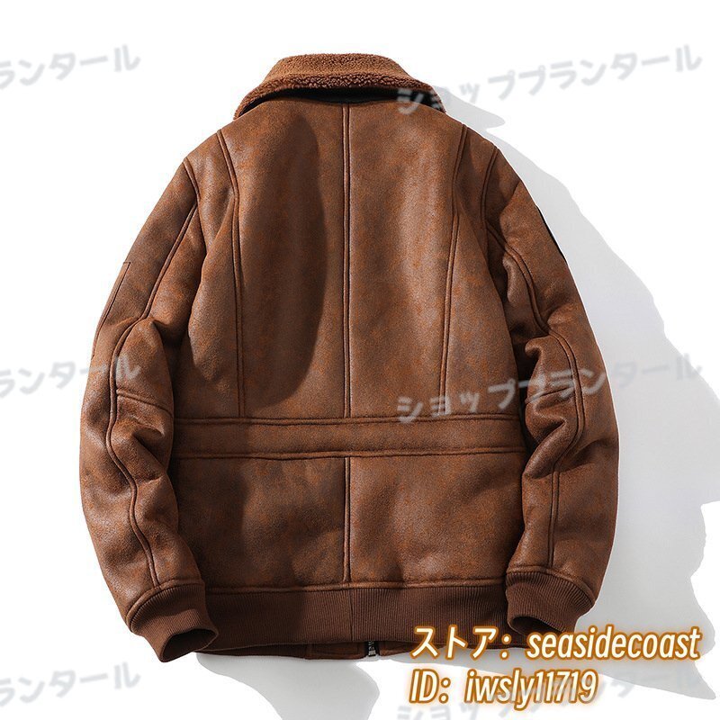 最上級 定価16万 ムートンコート メンズ ブルゾン フライトジャケット ファーコート レザージャケット バイクウェア 超防寒 ブラウン 5XL