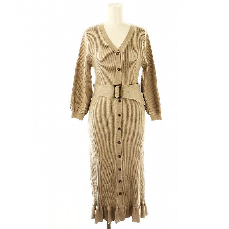 アプワイザーリッシェ Apuweiser-riche マーメイドリブニットワンピース ベルト付き 2 ライトブラウン /MI ■OS レディース