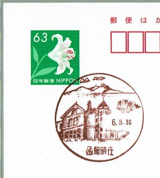 2024(令和6)年8月30日限りで一時閉鎖された郵便局の風景印を官製はがきに押印しています。