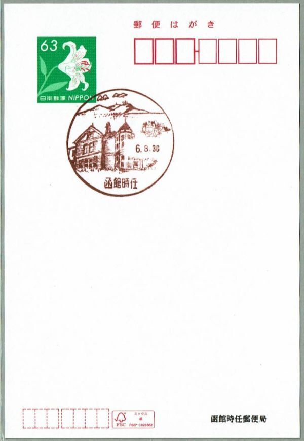 風景印使用郵便局の一時閉鎖前最終日に押印した官製はがき(官白)。