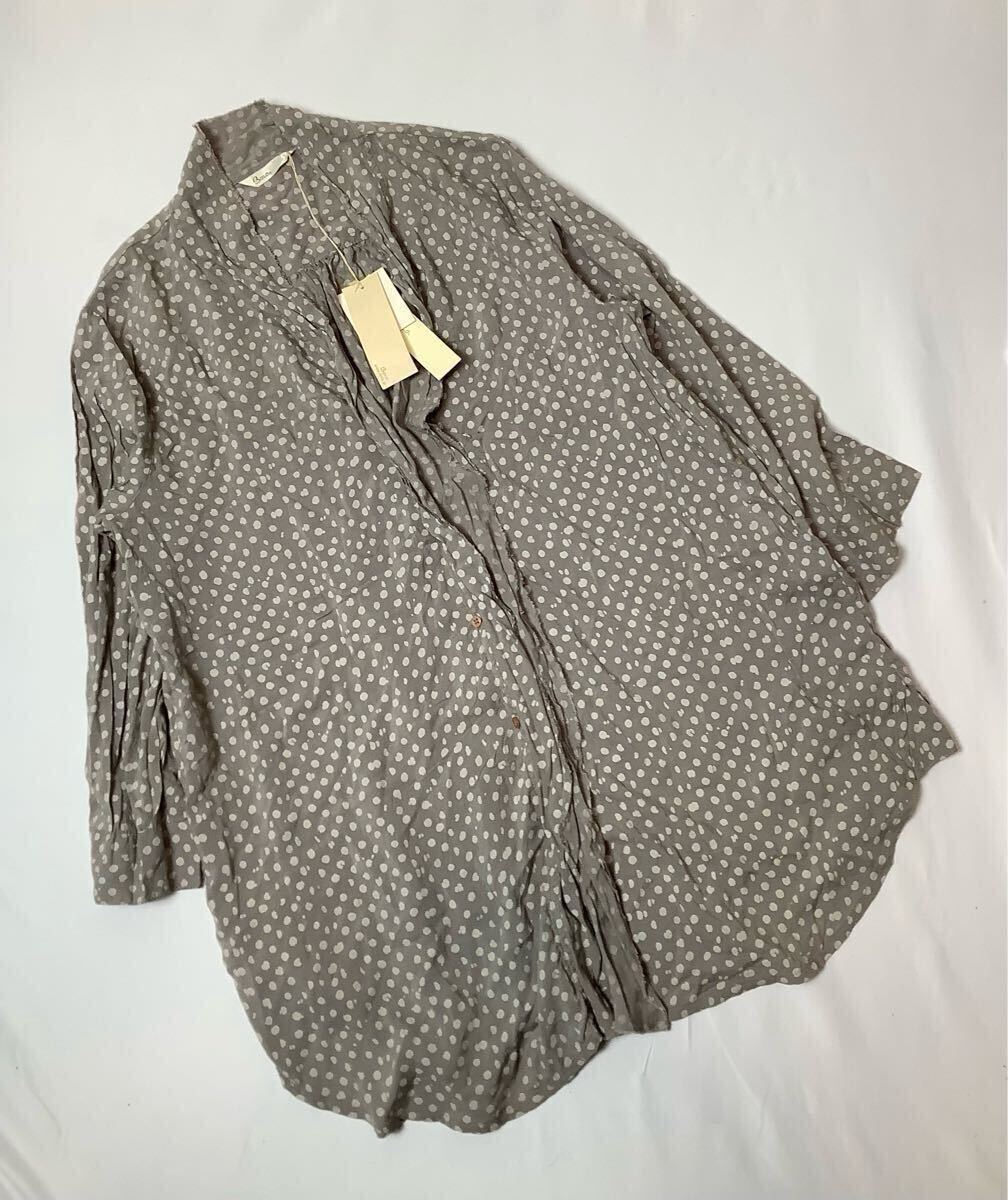 ・シワ加工 8分袖 ドット柄 チュニック ブラウスの出品になります。