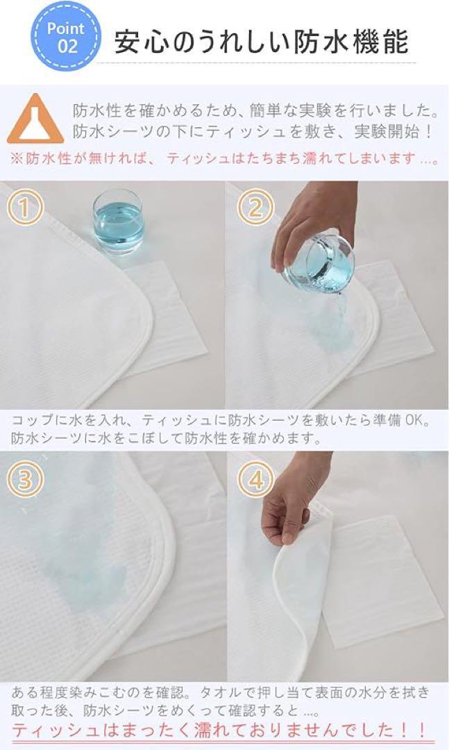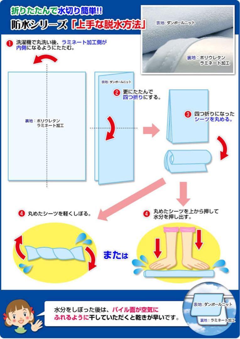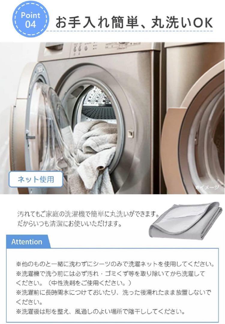 ご自宅の洗濯機で丸洗い可能、いつでも清潔に使えます。おねしょの後処理や衛生面でも大助かります。水流を「弱」にし「洗濯ネット」をご使用ください。防水素材なので、シーツは完全に脱水できません。