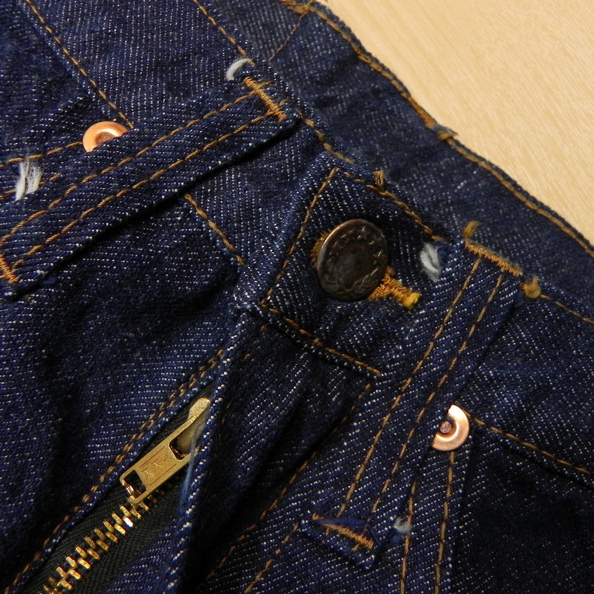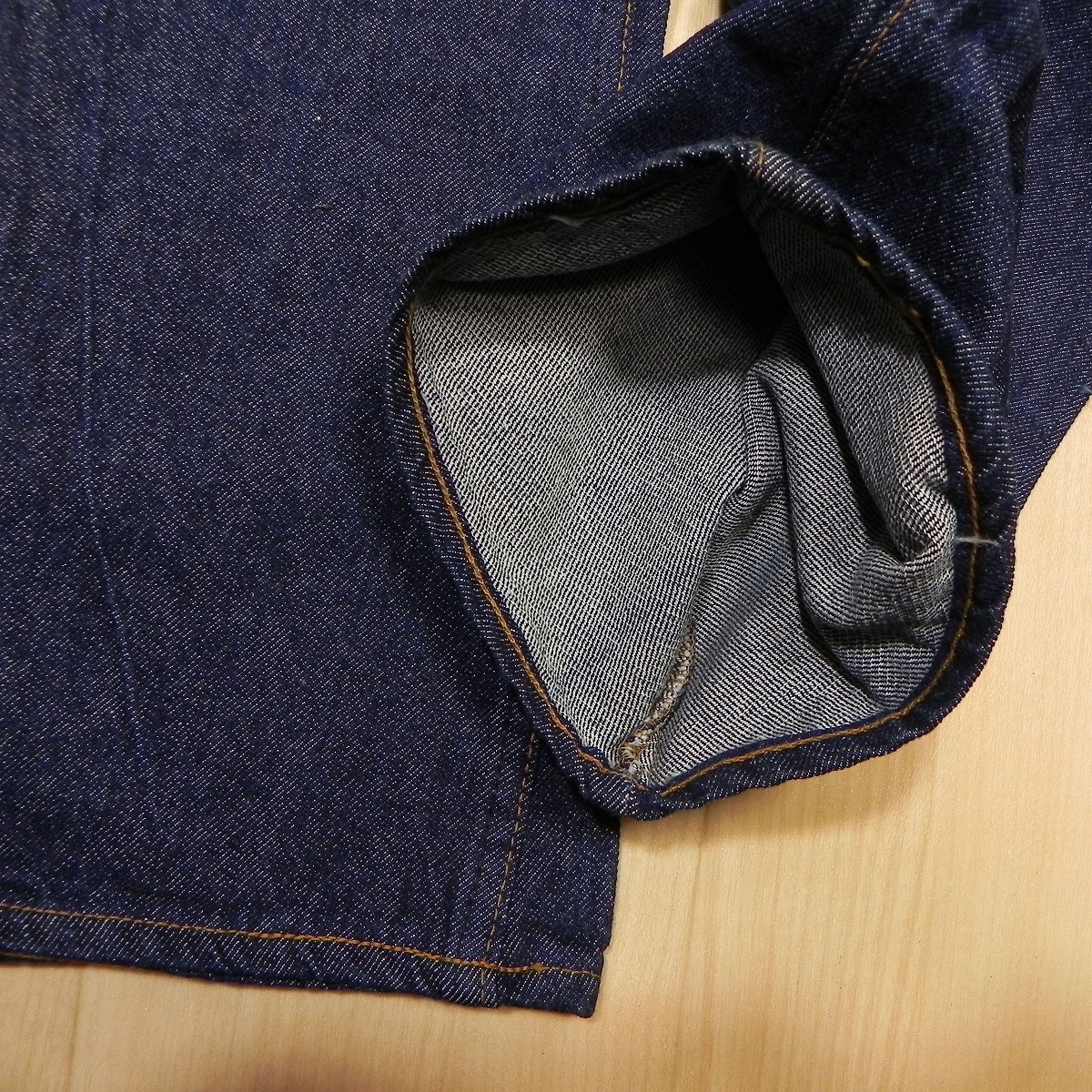 ●あくまでも古着のため、ノークレームノーリターンでお願いいたします。使用感は、少なめな感じで、状態はいい方だと思います。色も濃紺です。裾はオリジナルのチェーンステッチです。 おそらく国産の古いジーパンだと思います。