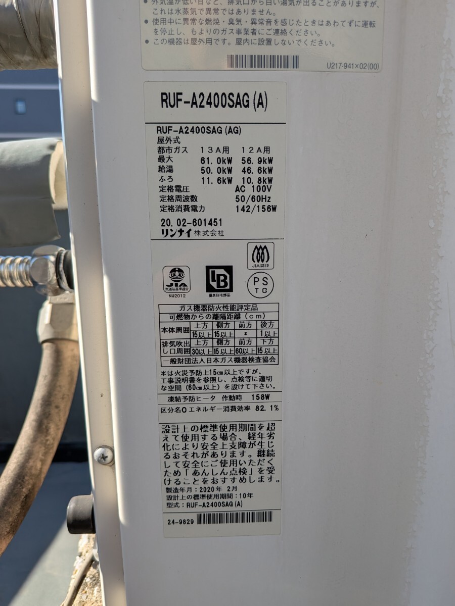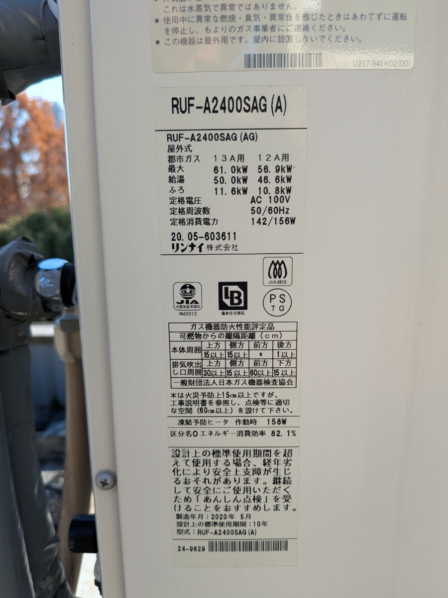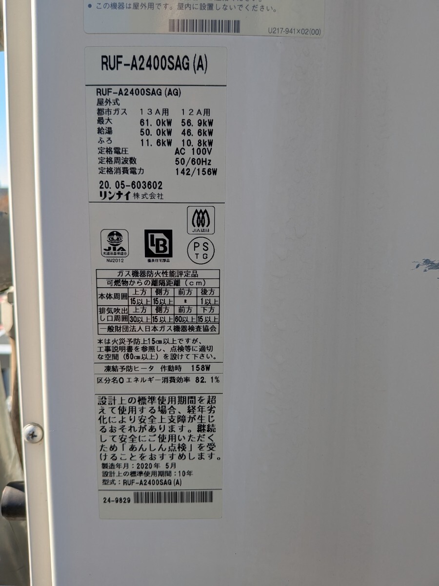 リンナイ 24号 給湯器 RUF-A2400SAG