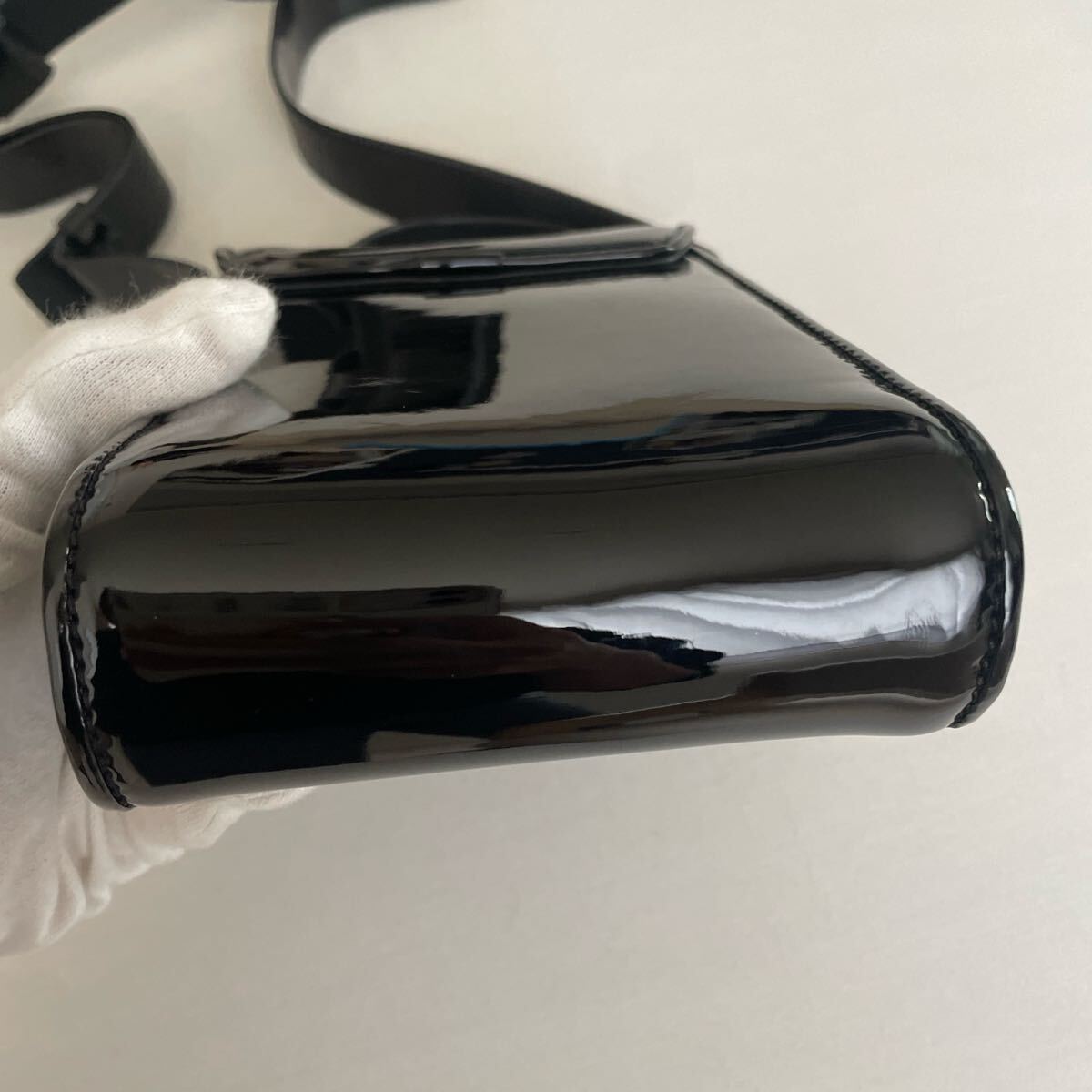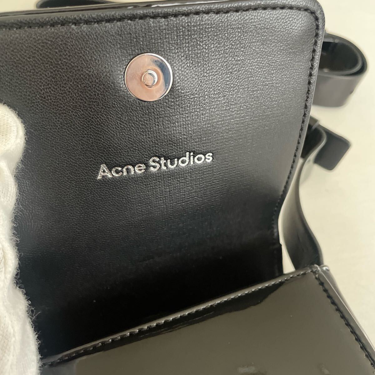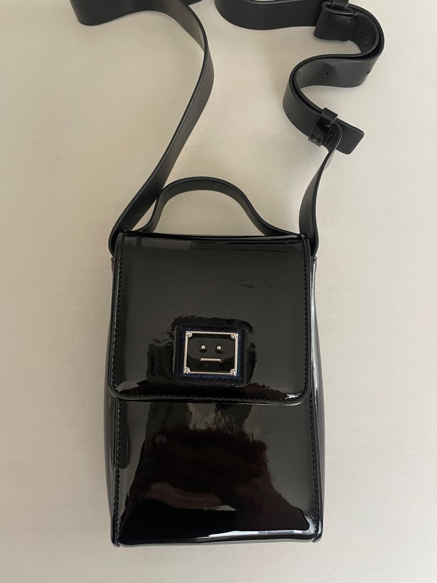 極美品【アクネストゥディオズ 】 フェイスミニクロスボディバッグ ショルダーバッグ Acne Studios フェイス ミニショルダー クロス バック 希少 パテント 黒 ブラック