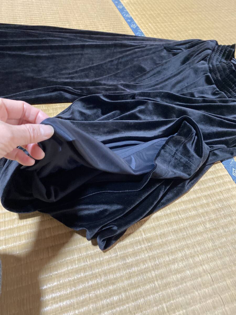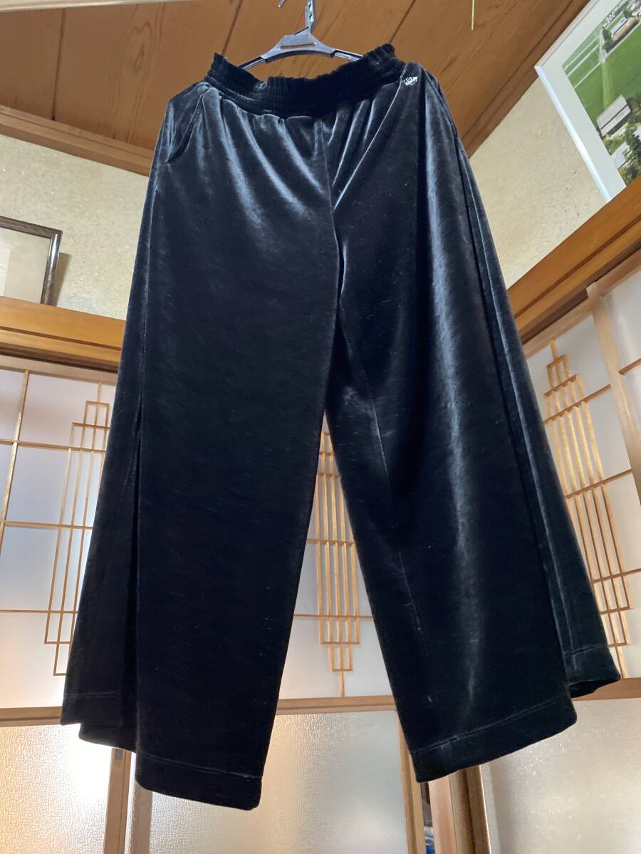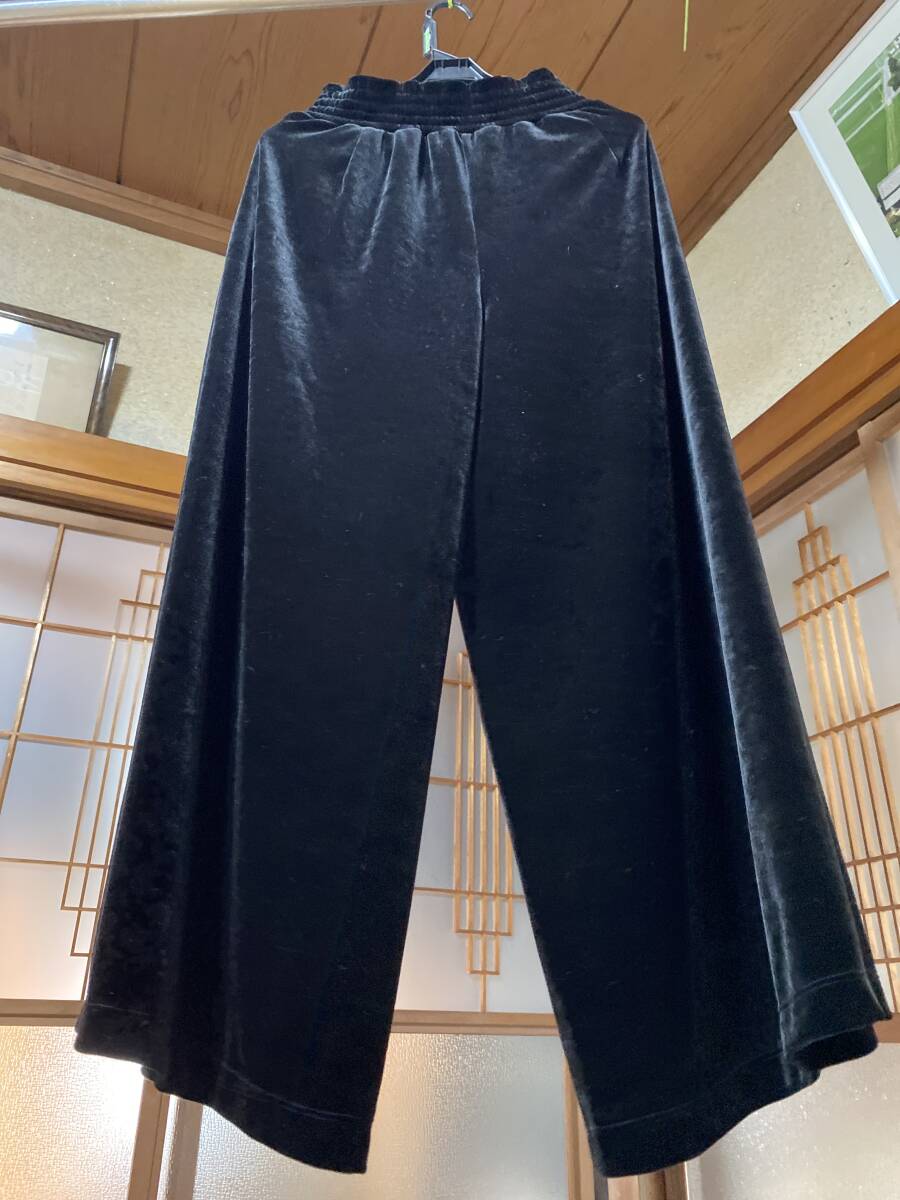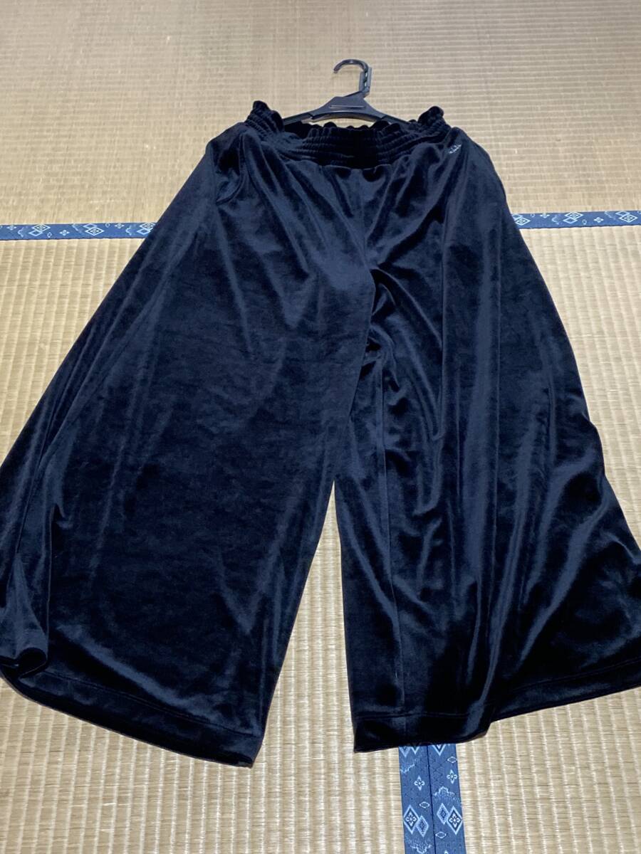 メルローズ製品、黒、柔らかいベロア、Freeサイズ、裏地付き、カメリア刺繍入り.左右ポケット付き