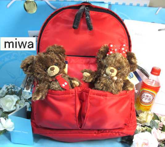 ユニベアはフロントポケットに入れたり、サイドのリングに付けられます。とっても可愛いお品物です♪