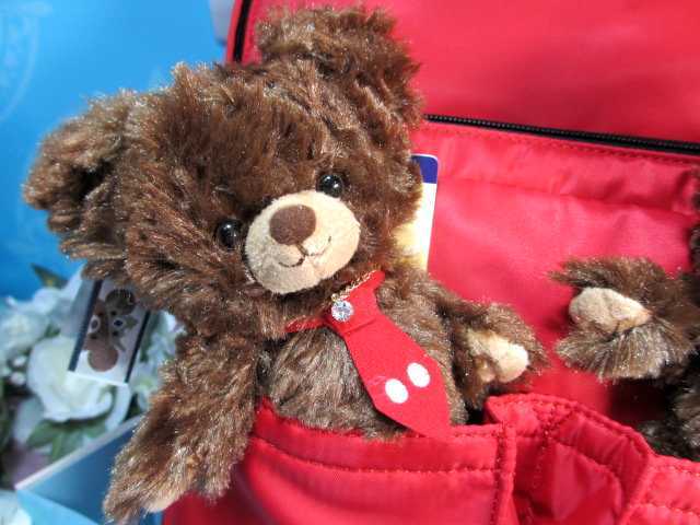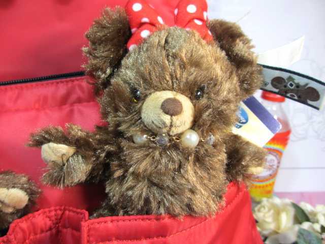 送料無料 35%引 サマンサタバサ ディズニー ユニベア 限定 リュック デイバッグ 赤 新品 証明書付 モカ プリン ぬいぐるみチャーム 2体付