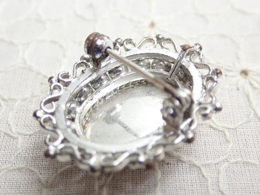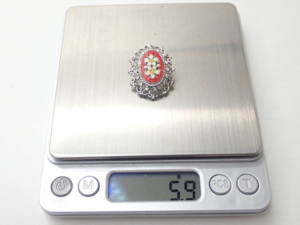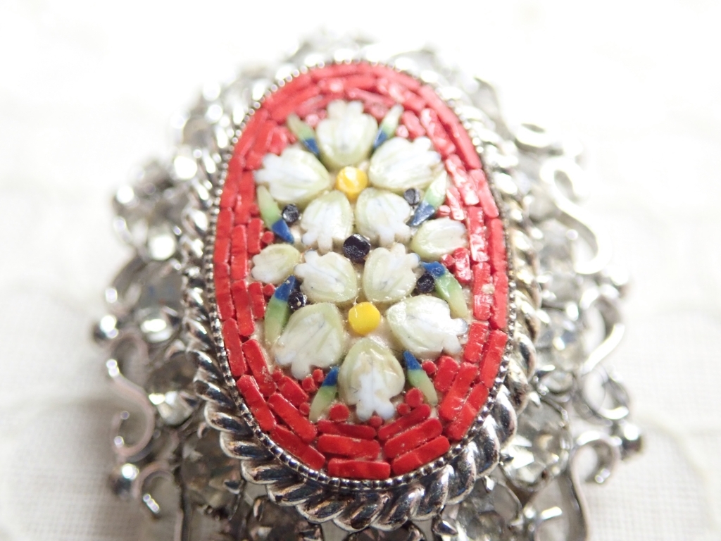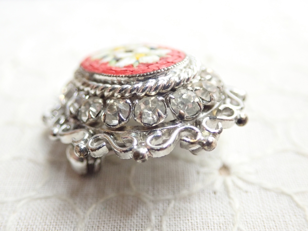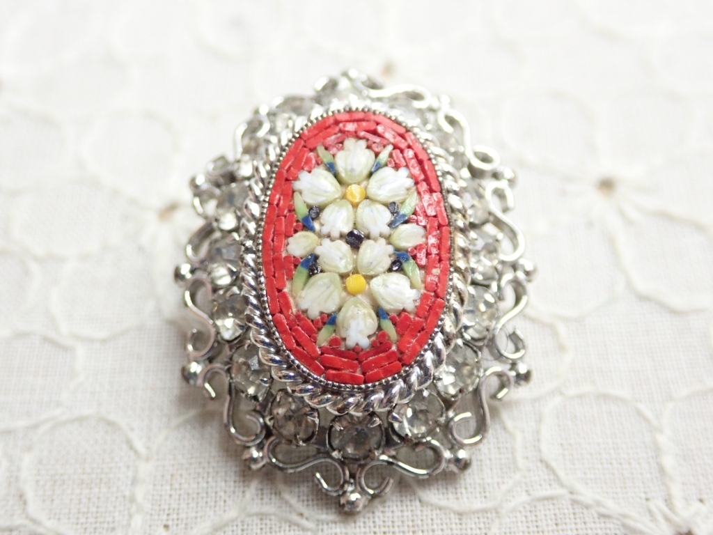 L514 ヴィンテージ ブローチ マイクロモザイク フラワーデザイン ラインストーン 小サイズ トップ アクセサリー Vintage brooch