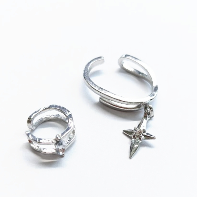 L1 レディースイヤーカフ シルバー ダブルイヤカフ クロスデザイン 重ね付けデザインイヤリング 幅調整可能ノンホールピアスアクセサリー