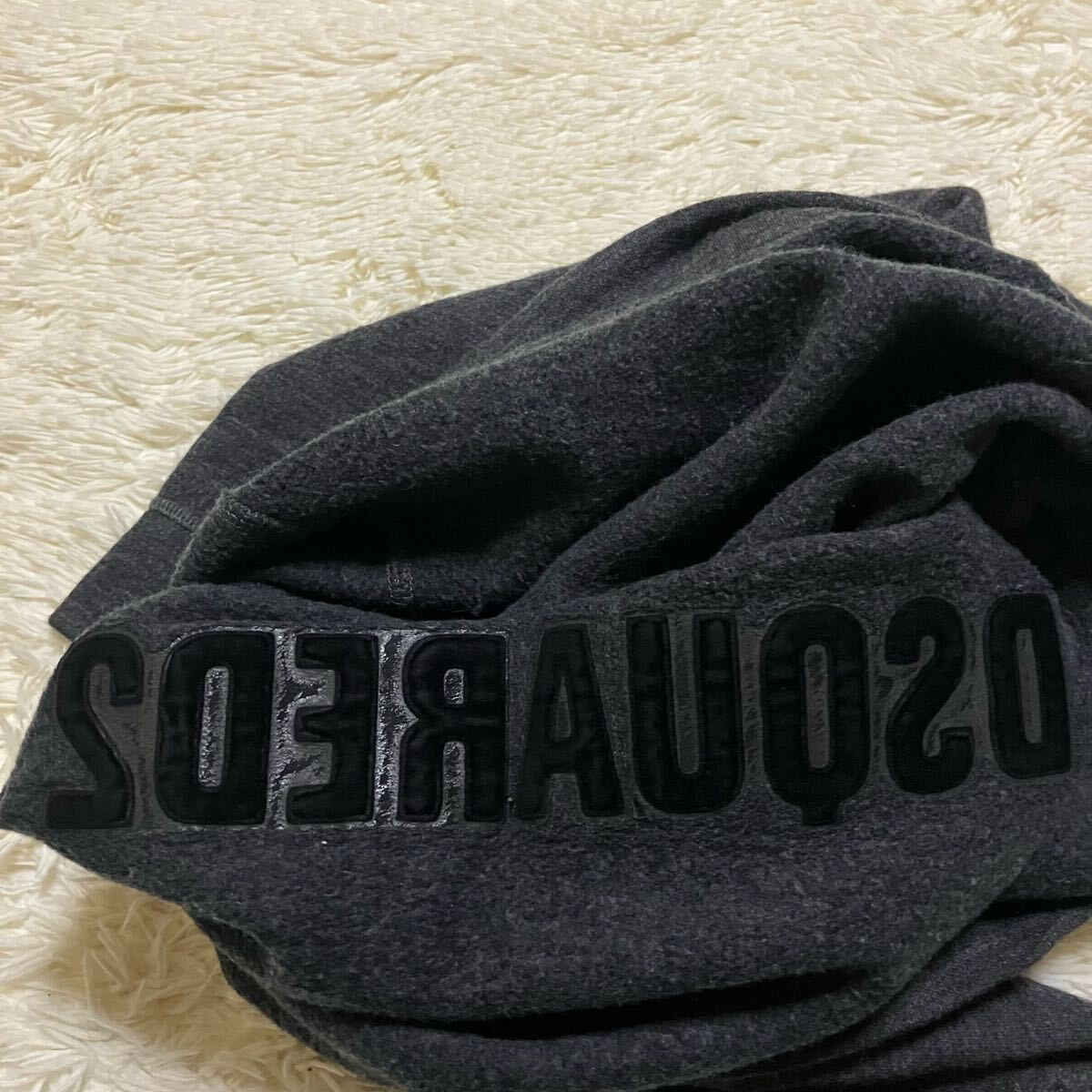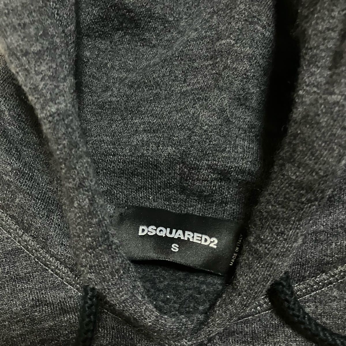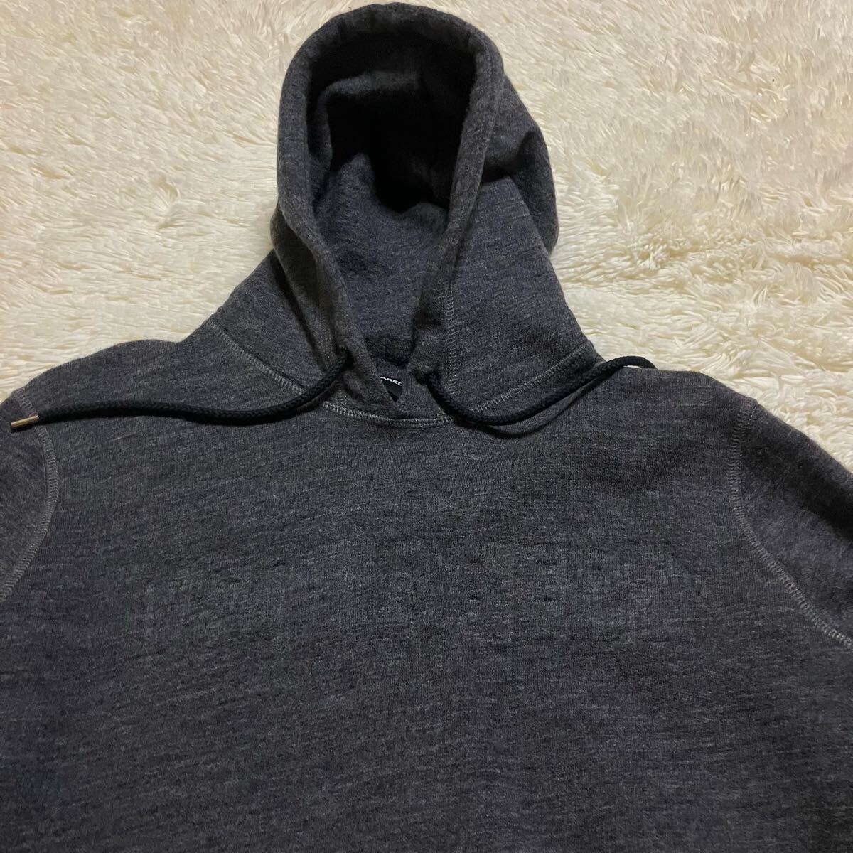 ディースクエアードのエンボス加工のロゴ入りパーカーです。凹凸なので、明るさ等でやや見えやすさが変わるものの、加工でDSQUAERD2 のロゴが入っており、格好良いです。お色もグレーで使いやすいかと思います。Sサイズですが大きめかと思います。全体的に、美品と言っていいかと思います。