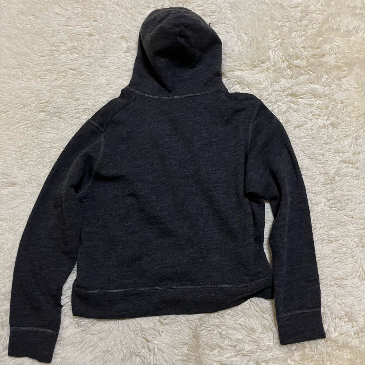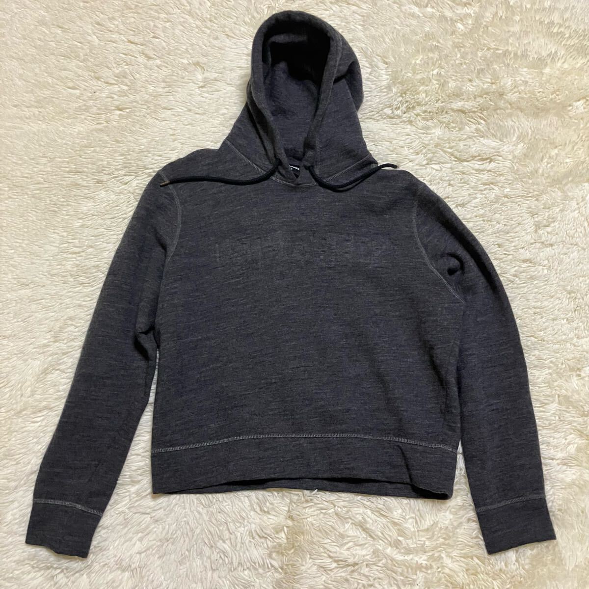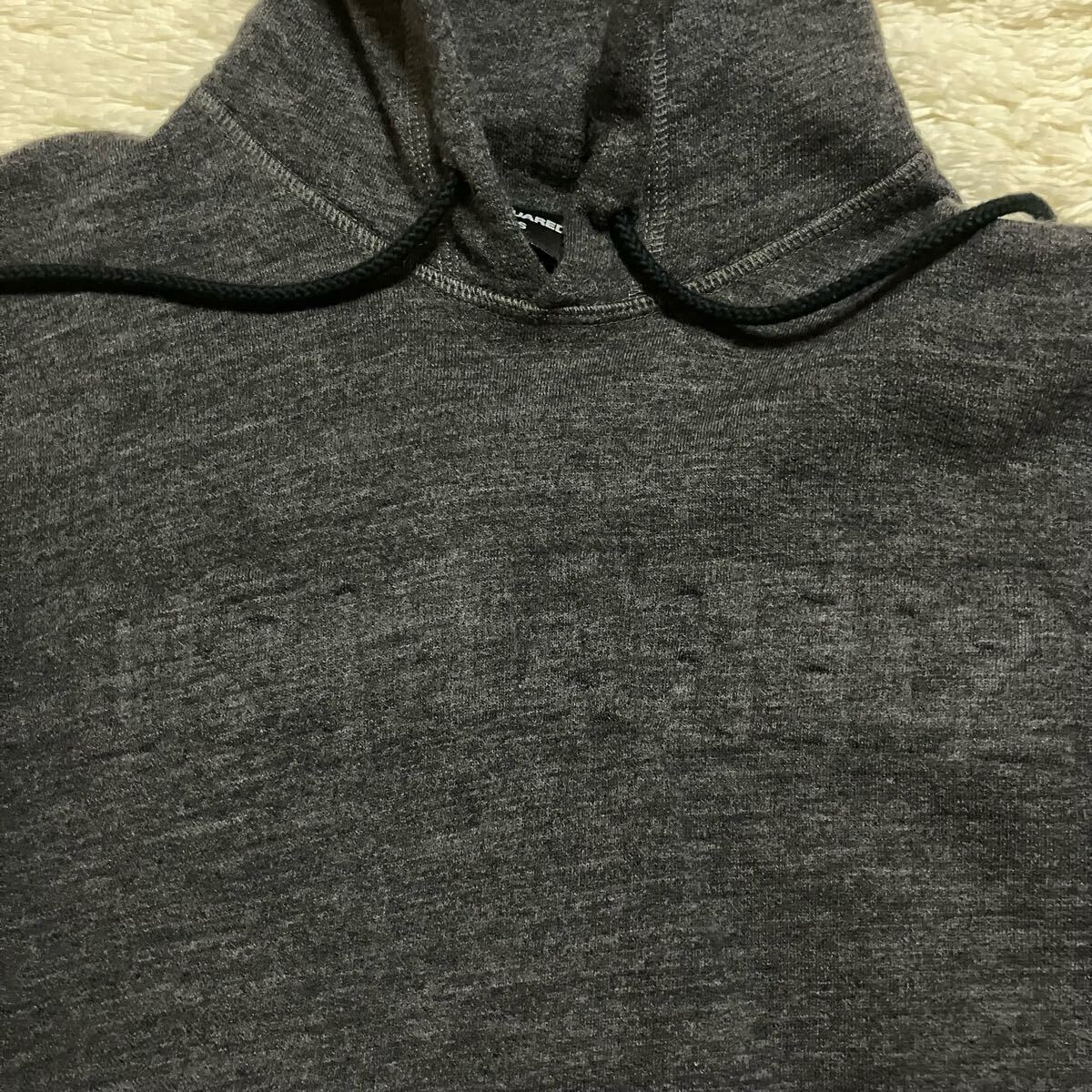 ディースクエアードのエンボス加工のロゴ入りパーカーです。凹凸なので、明るさ等でやや見えやすさが変わるものの、加工でDSQUAERD2 のロゴが入っており、格好良いです。お色もグレーで使いやすいかと思います。Sサイズですが大きめかと思います。全体的に、美品と言っていいかと思います。