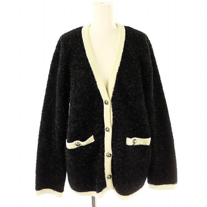 アプワイザーリッシェ Apuweiser-riche 24AW キラキラループツイードジャケット カーディガン Vネック ニット 長袖 2 黒