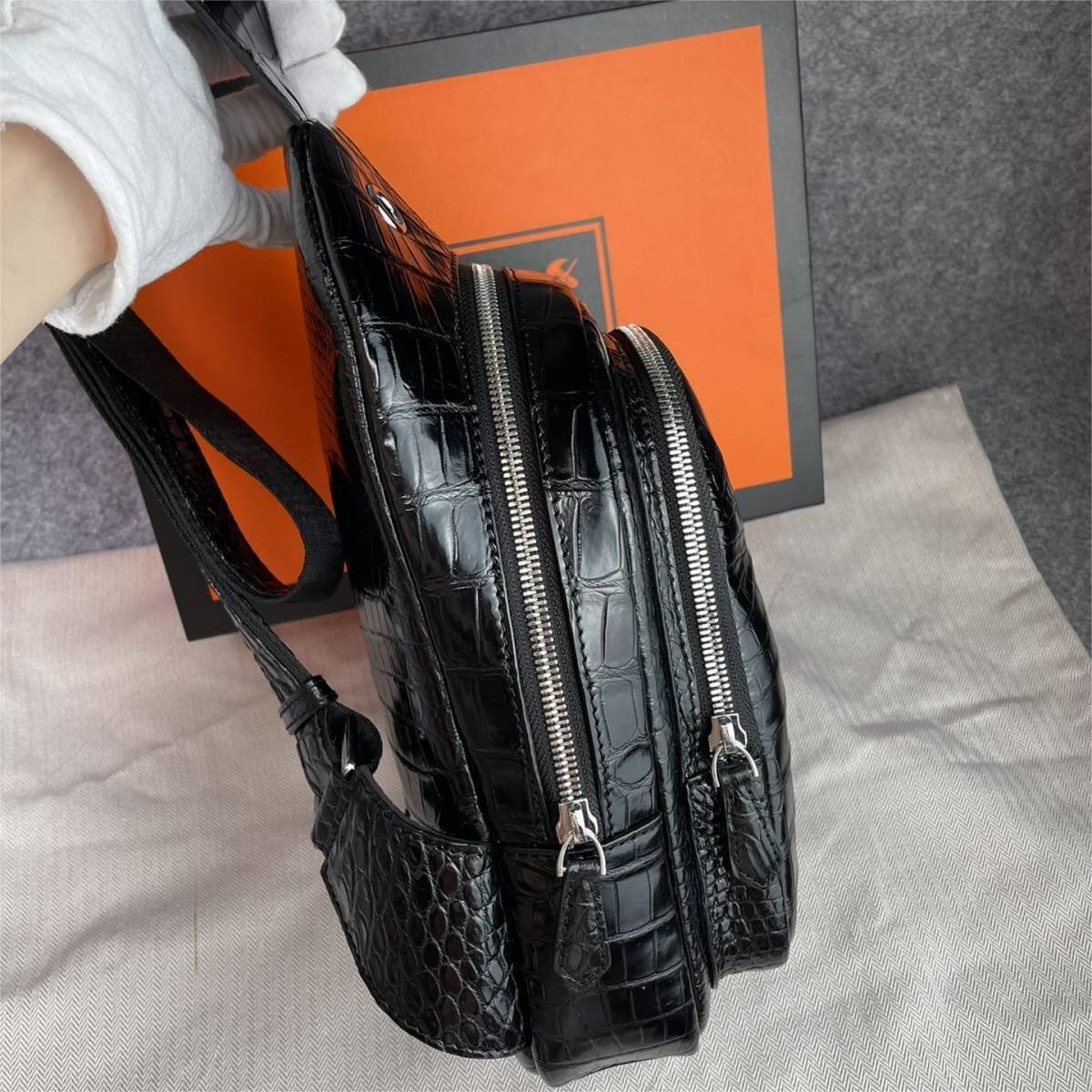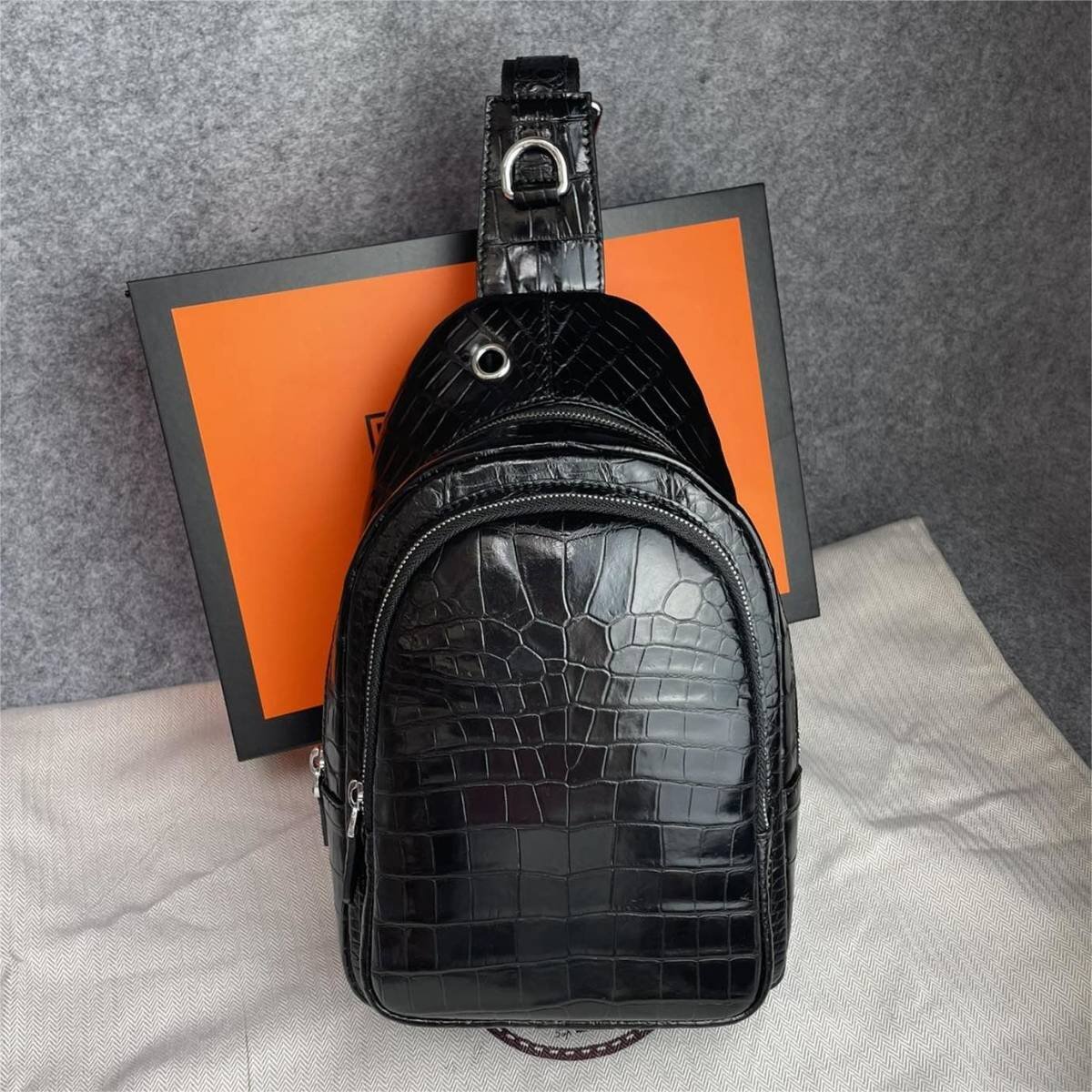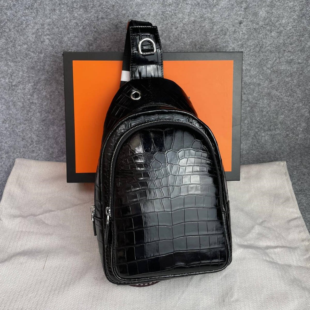 高品質 総クロコ クロコダイル本革 ワニ革本物 メンズバッグ 斜め掛け ボディバッグ 本革 大容量 腹革使用センター取り 黒