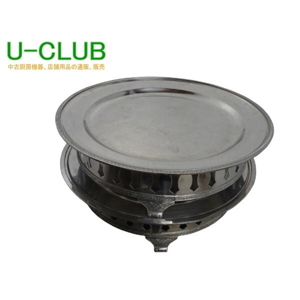 ●HL1224|オードブル皿 2枚セット 丸型 ステンレス バイキング ビュッフェ W510×D510×H150mm 中古