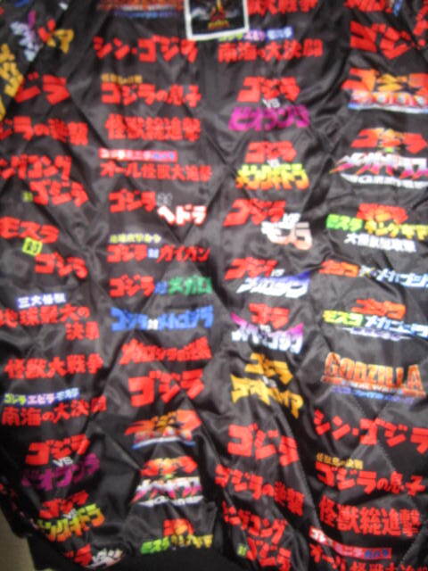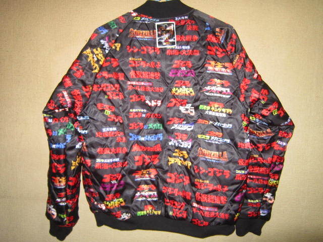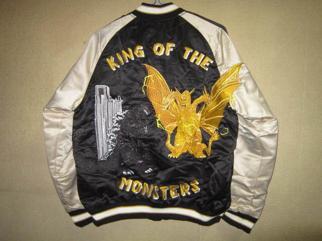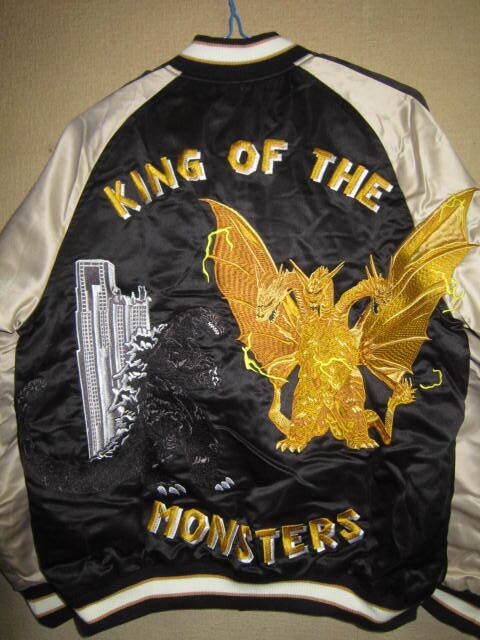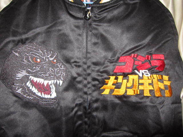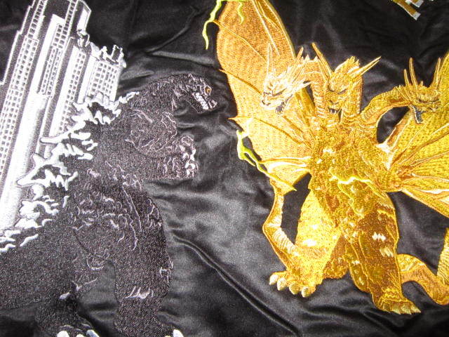超レア!新品 ゴジラ vs キングギドラ 刺繍 リバーシブル サテン 中綿 スカジャン 黒 L スーベニア ジャケット