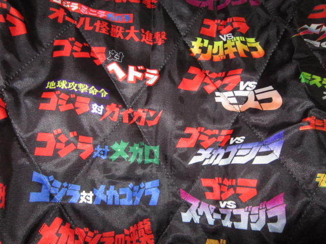 なんと リバーシブル仕様で裏面は歴代ゴジラ映画シリーズのタイトルロゴの転写プリントで表現しておりインパクト絶大。