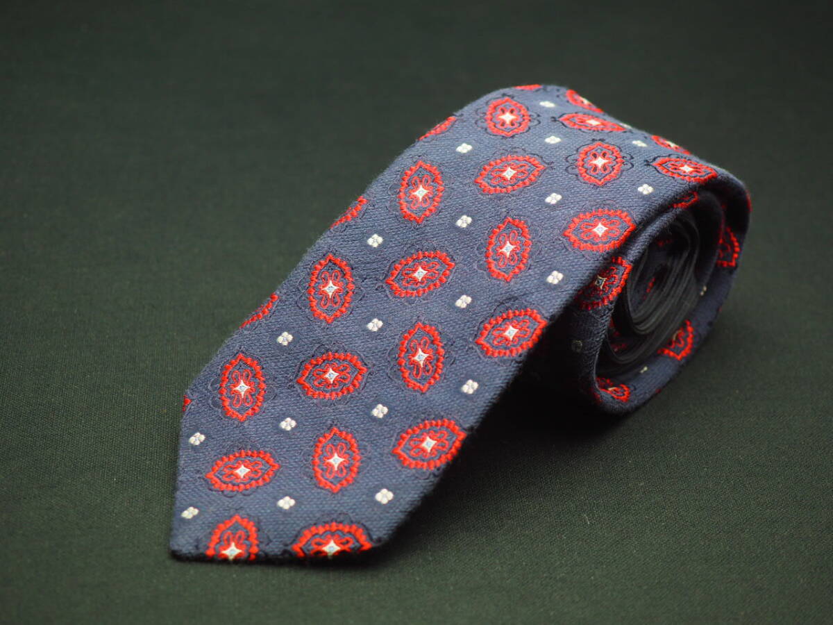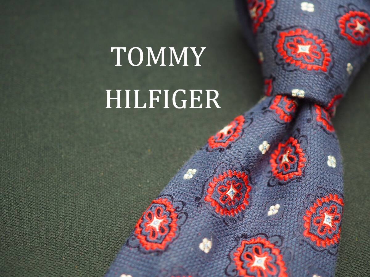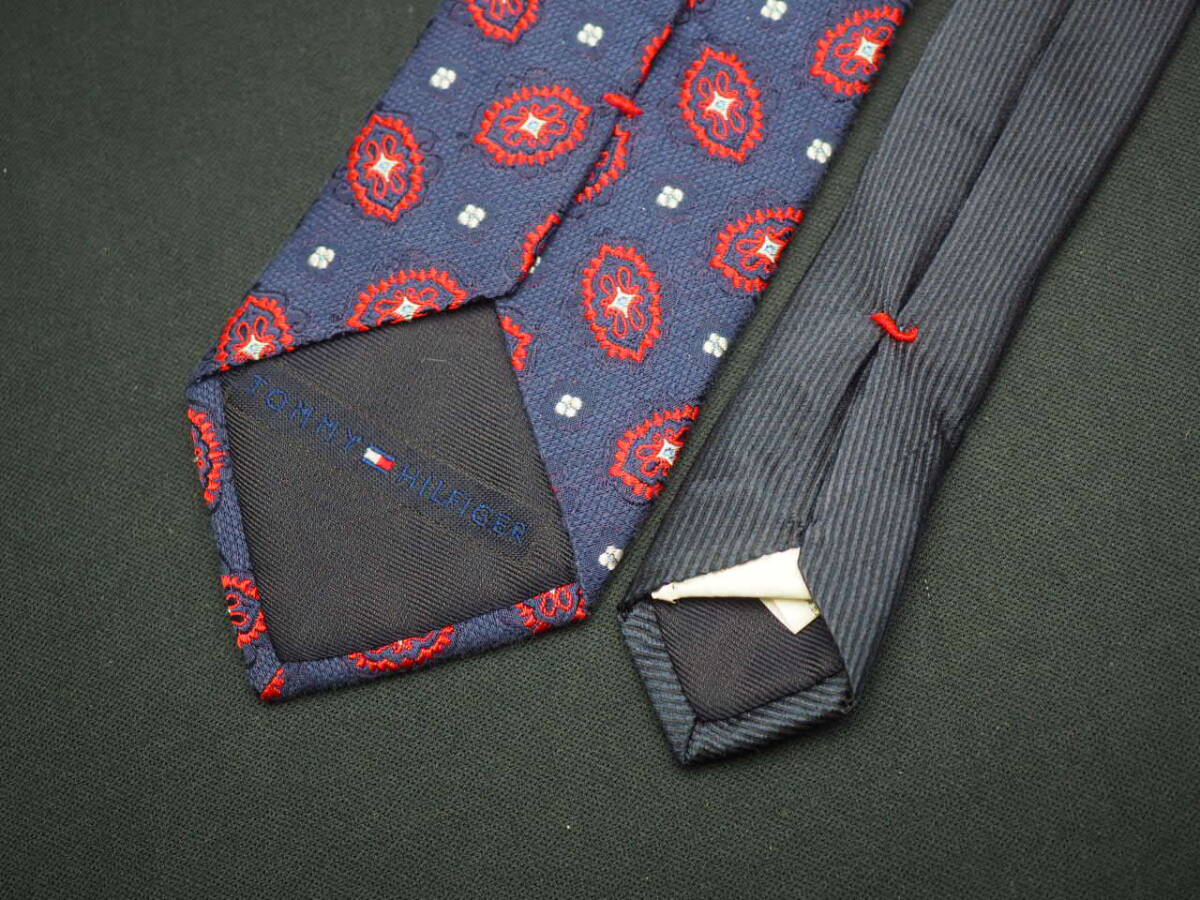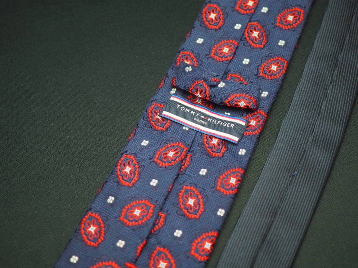 美品【TOMMY HILFIGER トミーヒルフィガー】 D1323 ペイズリー ネイビー ワイン SILK ブランド ネクタイ 古着 良品