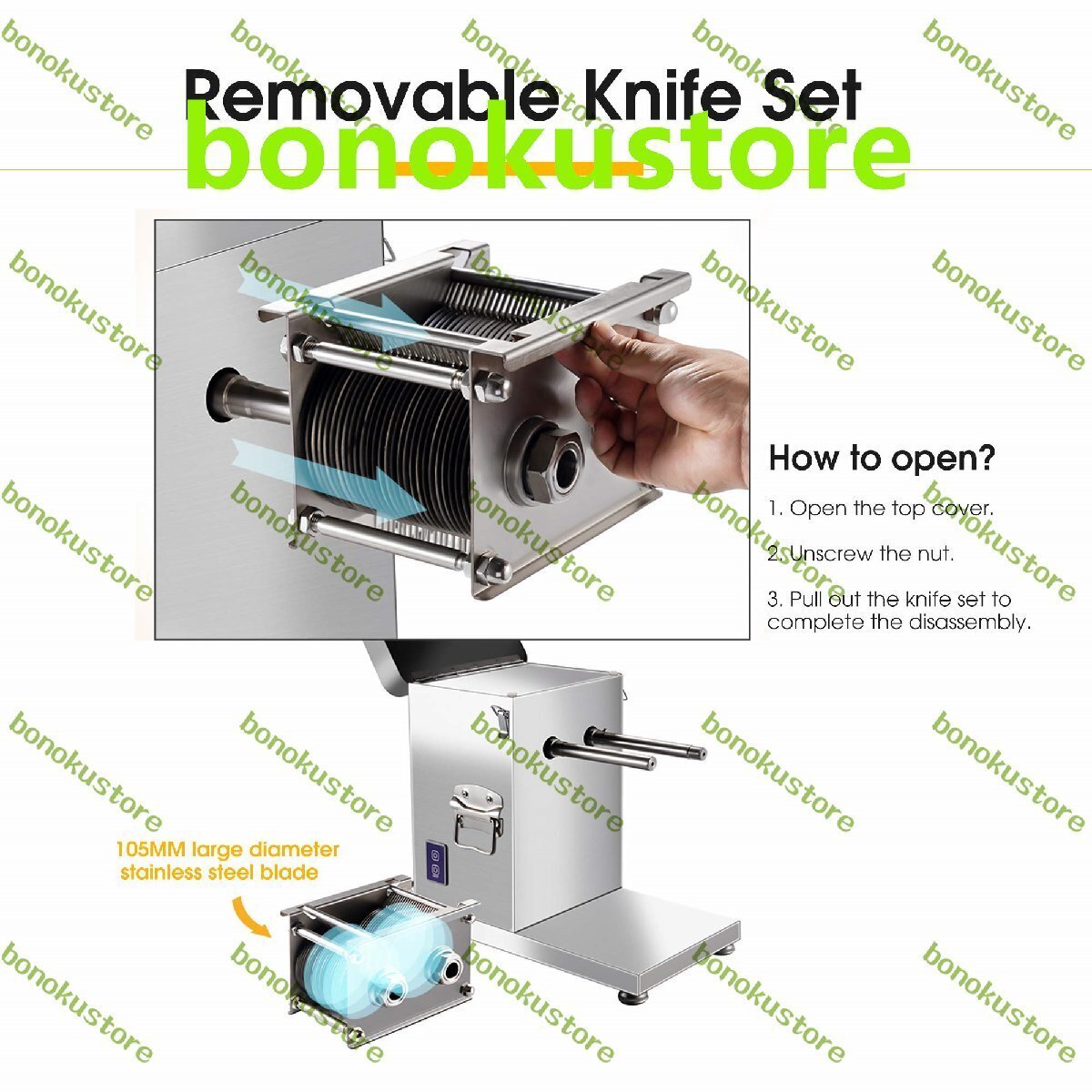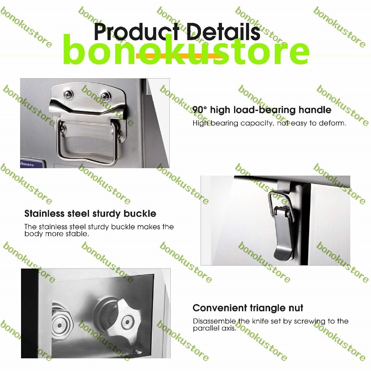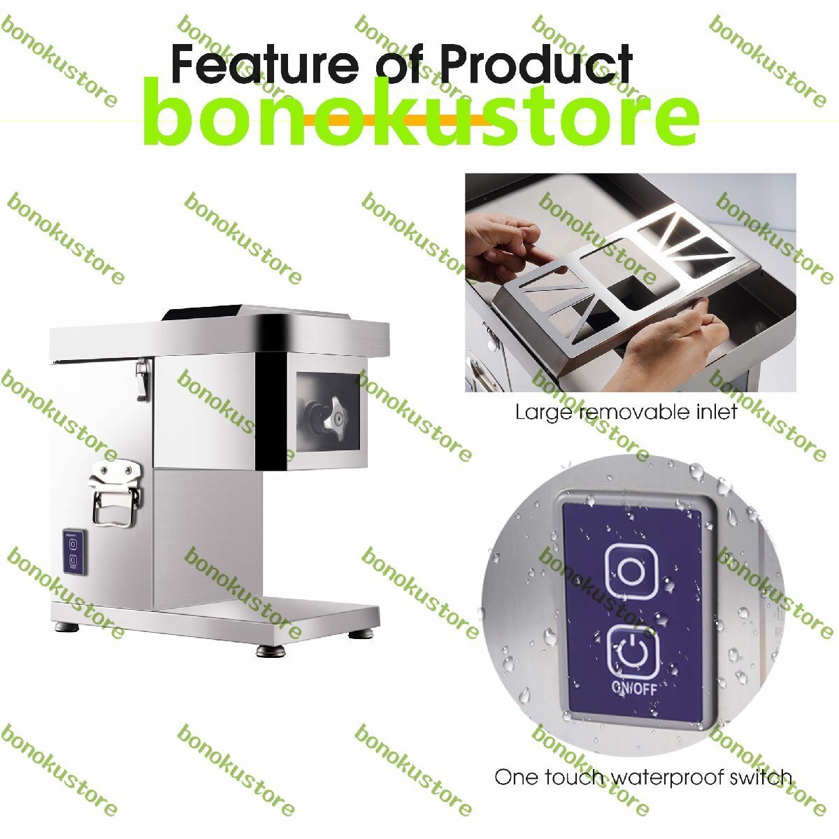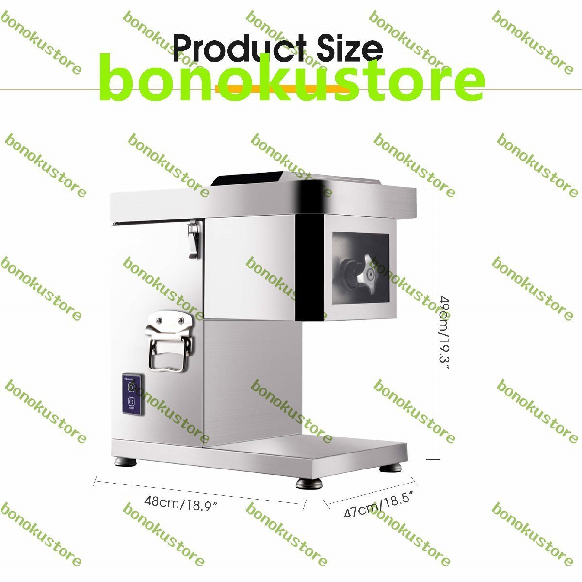 仕様: 材質: ステンレス 電源: 110V/220V 定格電力: 1500W 切断効率: 550lb/h 製品サイズ: 47*48*49cm 製品重量: 30kg 手動測定では1?2cmの誤差が生じる場合がありますので、ご了承ください。 お問い合わせ: ご質問やご要望がございましたら、いつでもお問い合わせください。