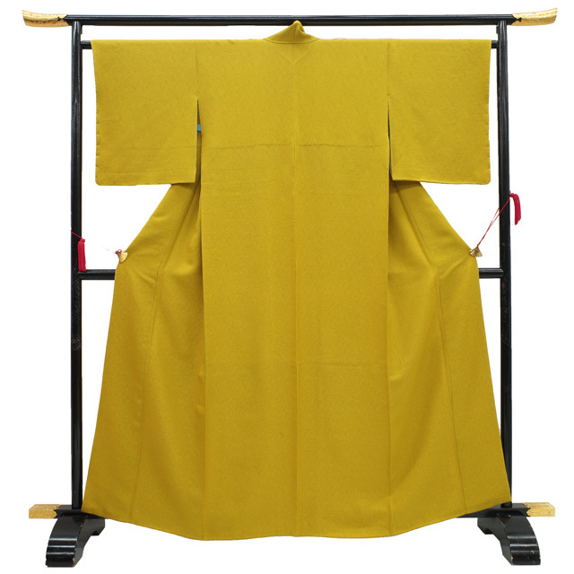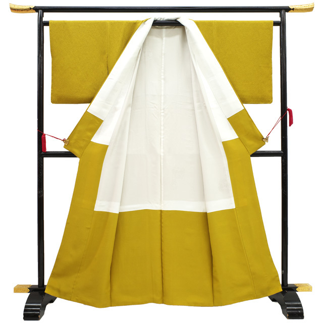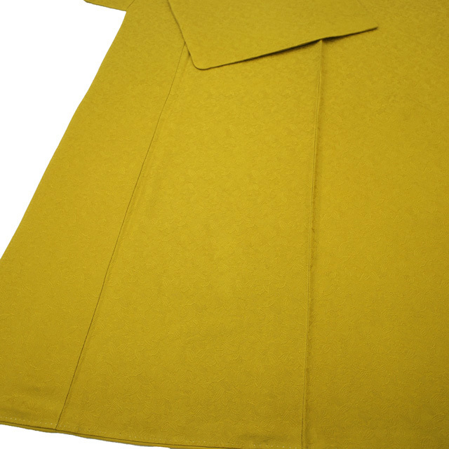 【新古品】 すごい値! 色無地 未使用 着物 正絹 袷 芥子色 万年青 オモト 上質 セミフォーマル カジュアル 仕立て上がり 身丈162 裄丈65.5 M~Lサイズ 春 秋 冬 未使用 色無地 お茶会 七五三 入学式 卒業式 など たとう紙付き 送料無料 20代 30代 40代 50代 60代 70代 80代 販売 購入 綺麗 美品 リサイクル すごいね みやがわ nek01365