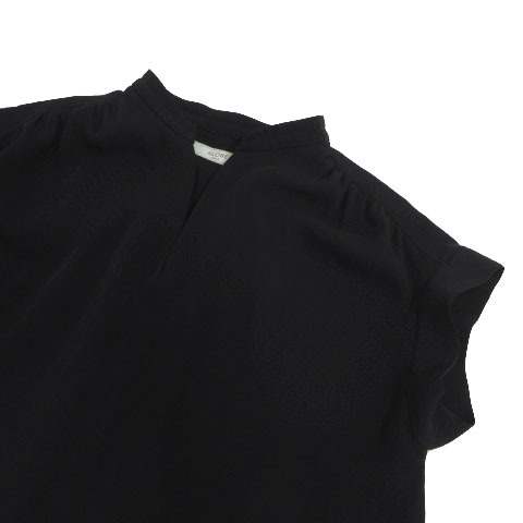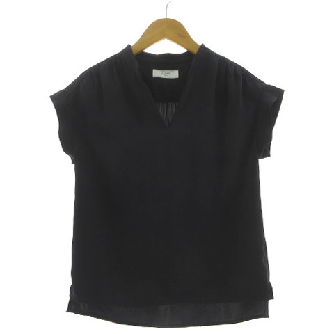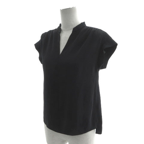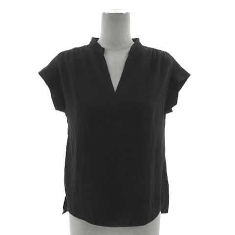 スローブ イエナ SLOBE IENA ブラウス スリットネック フレンチスリーブ テールカット スリット ネイビー 濃紺 36 レディース