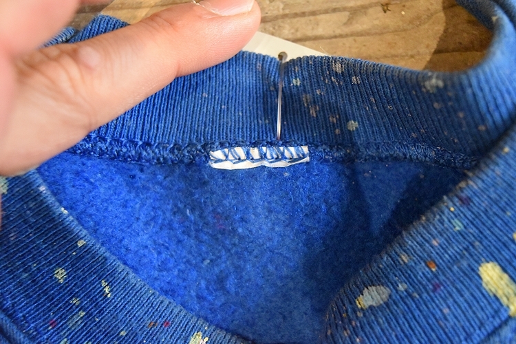 グッドスタイル◎ビンテージunknownラグランペイントスウェットトレーナーM相当ブルー青アメカジストリート トラッドスタイルt456