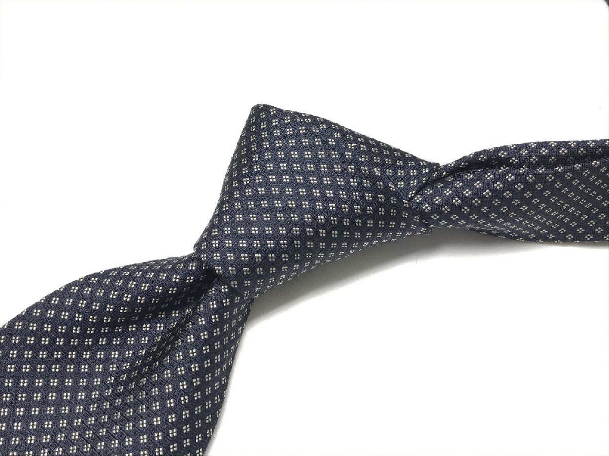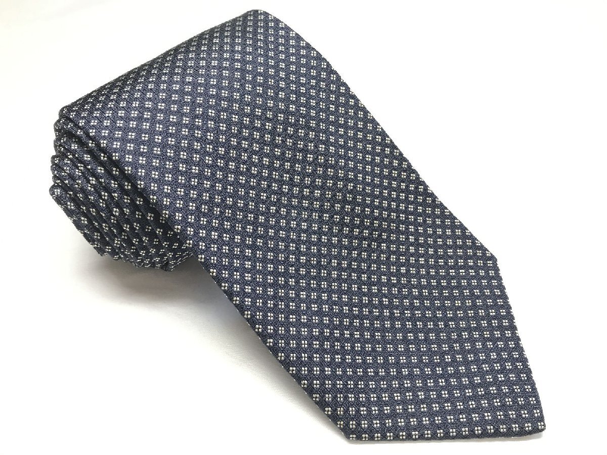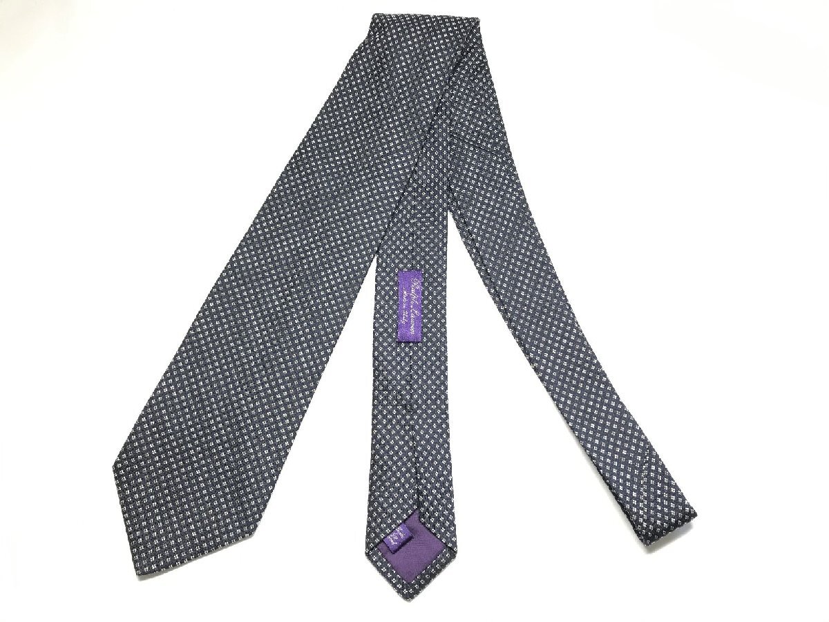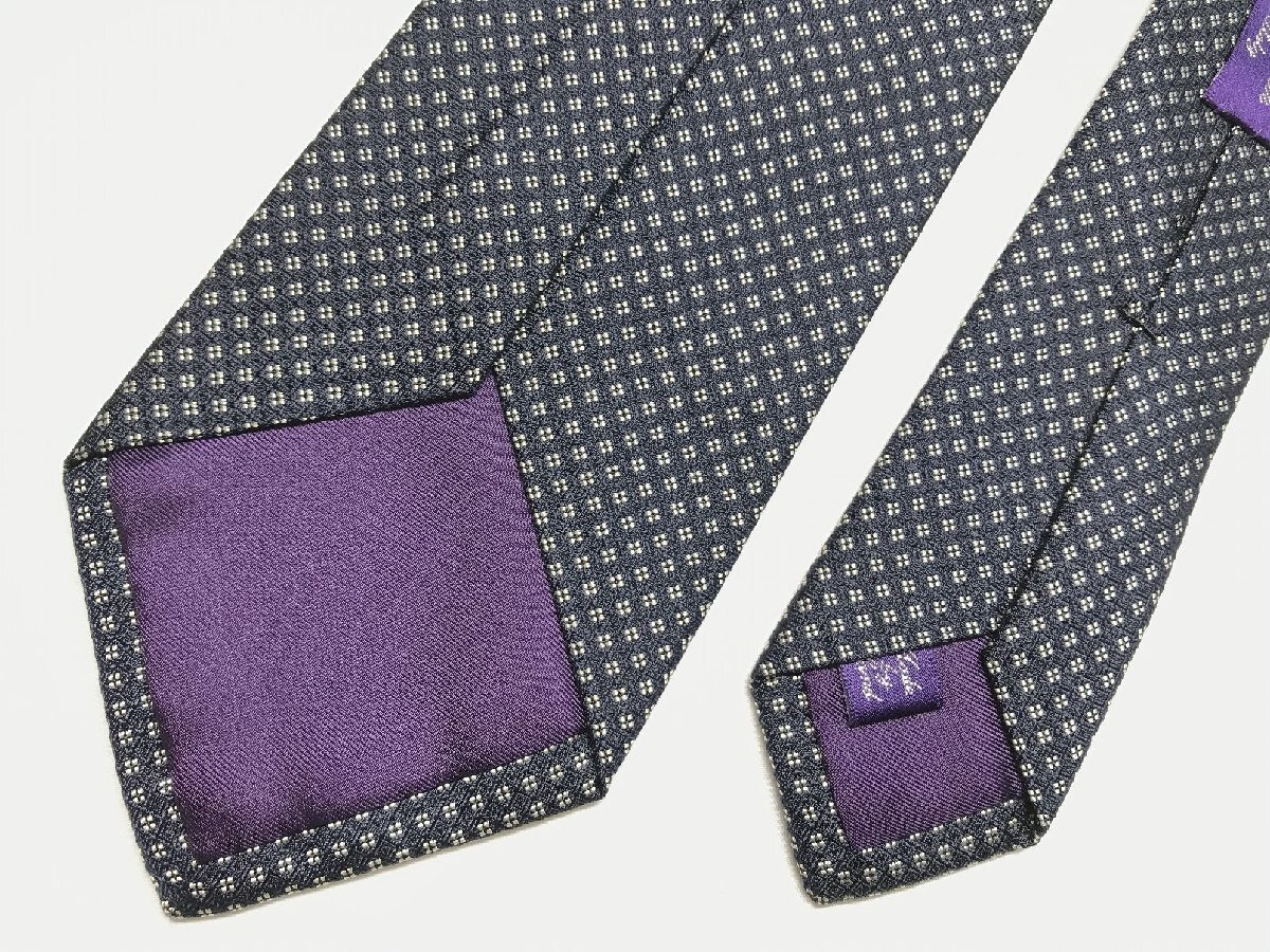 HH【ラルフローレンパープルレーベル RALPH LAUREN PURPLE LABEL】 小紋柄 織柄 シルク ネクタイ (メンズ) 紺×白 イタリア製 ◯27KSM1993