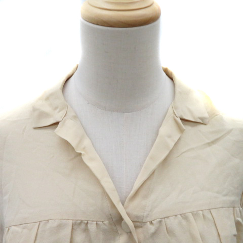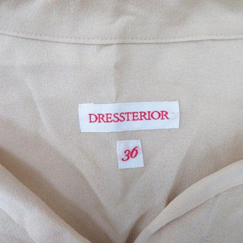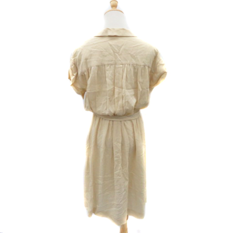 ドレステリア シャツワンピース ひざ丈 半袖 スキッパーカラー ウエストリボン キャミソール付き シルク 36 S ベージュ レディース
