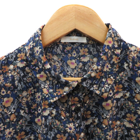テチチ Te chichi シャツ ブラウス フレンチスリーブ 花柄 F マルチカラー 紺 ネイビー /YK30 レディース