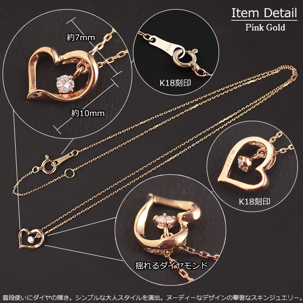 18金 ネックレス レディース ハート K18 ダイヤモンド ペンダント ジュエリー ピンクゴールド 82174830 新品