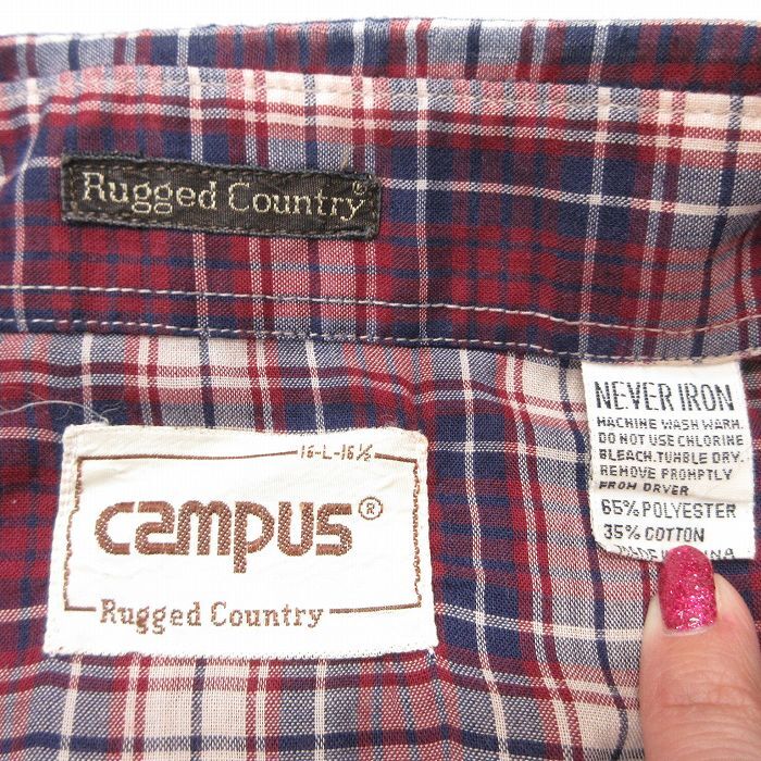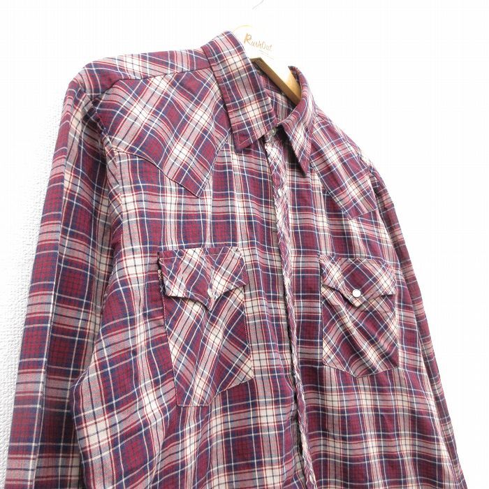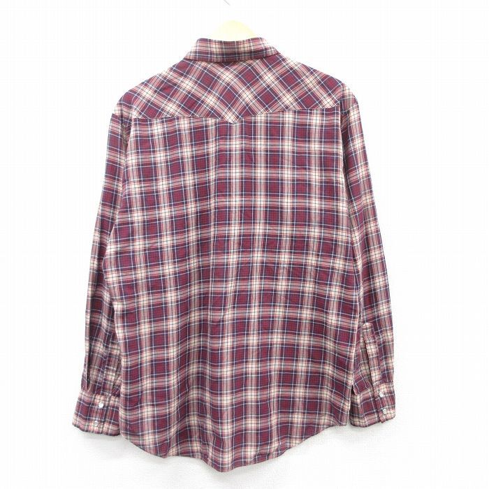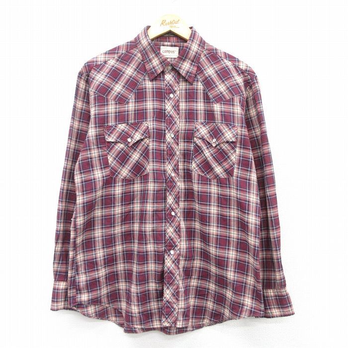 【商品名】 L★古着 キャンパス 長袖 ウエスタン シャツ メンズ 80年代 80s エンジ系他 チェック