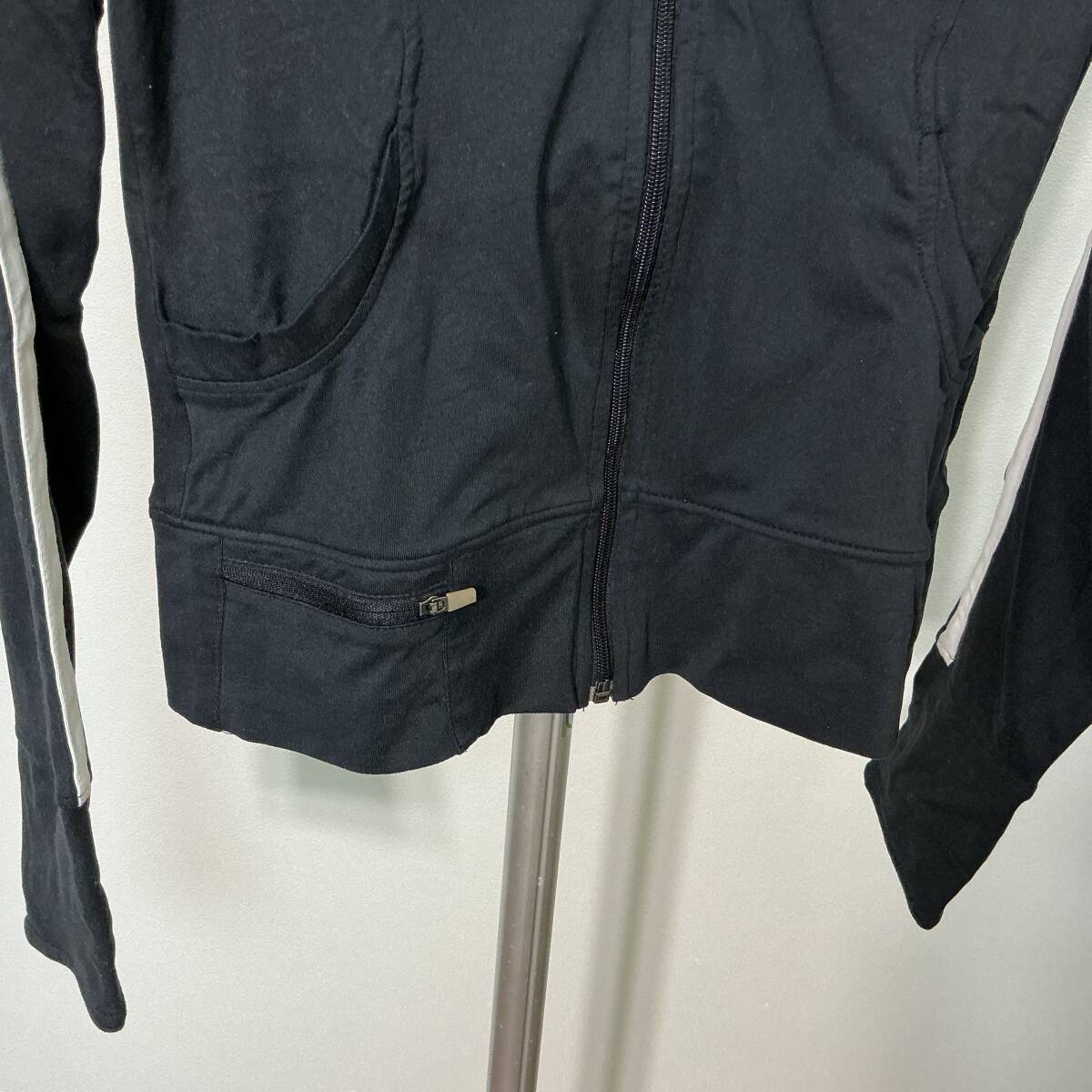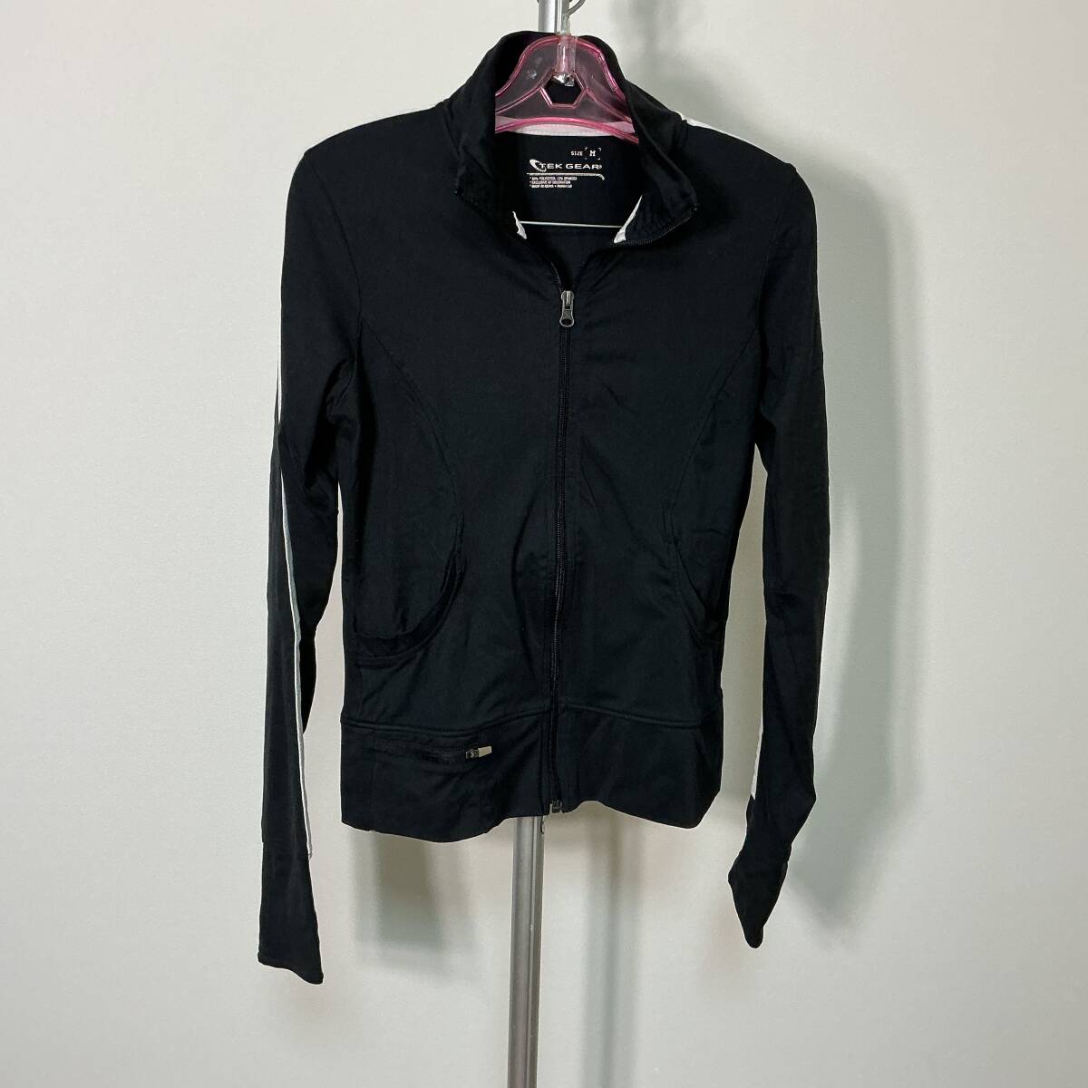 B965◆黒/白ライン飾りポケット付おしゃれジャージTop伸縮◎M